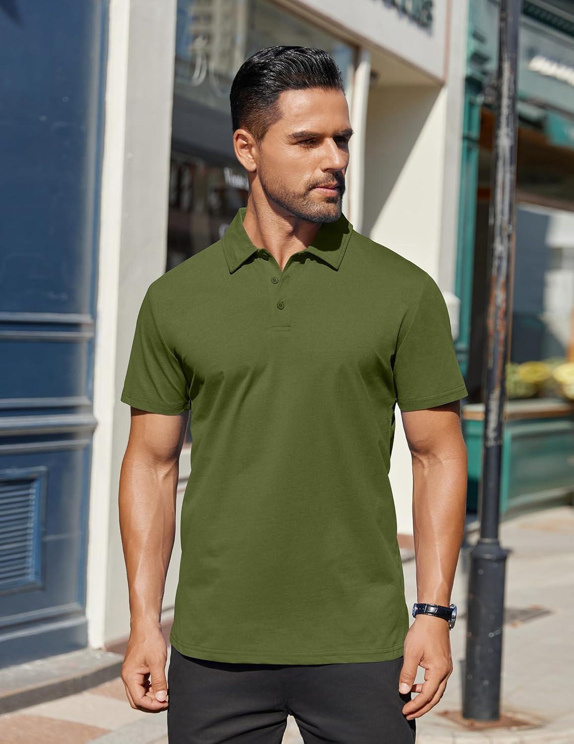 COOFANDY Men’s Polo Shirts Short Sleeve Moisture Wicking Golf Shirt Fashion Casual Collared T-Shirt(Army Green)