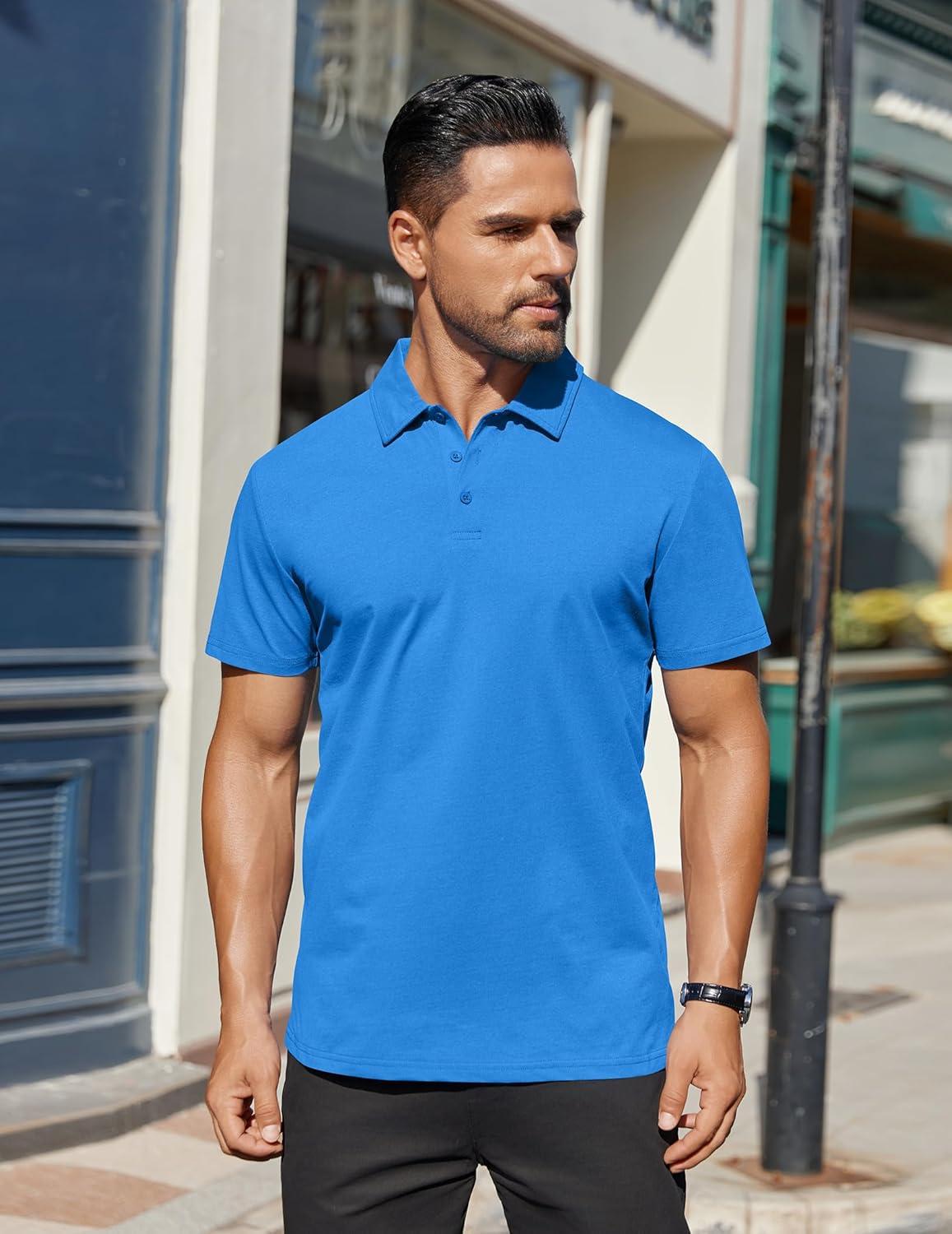 COOFANDY Men’s Polo Shirts Short Sleeve Moisture Wicking Golf Shirt Fashion Casual Collared T-Shirt(Blue)