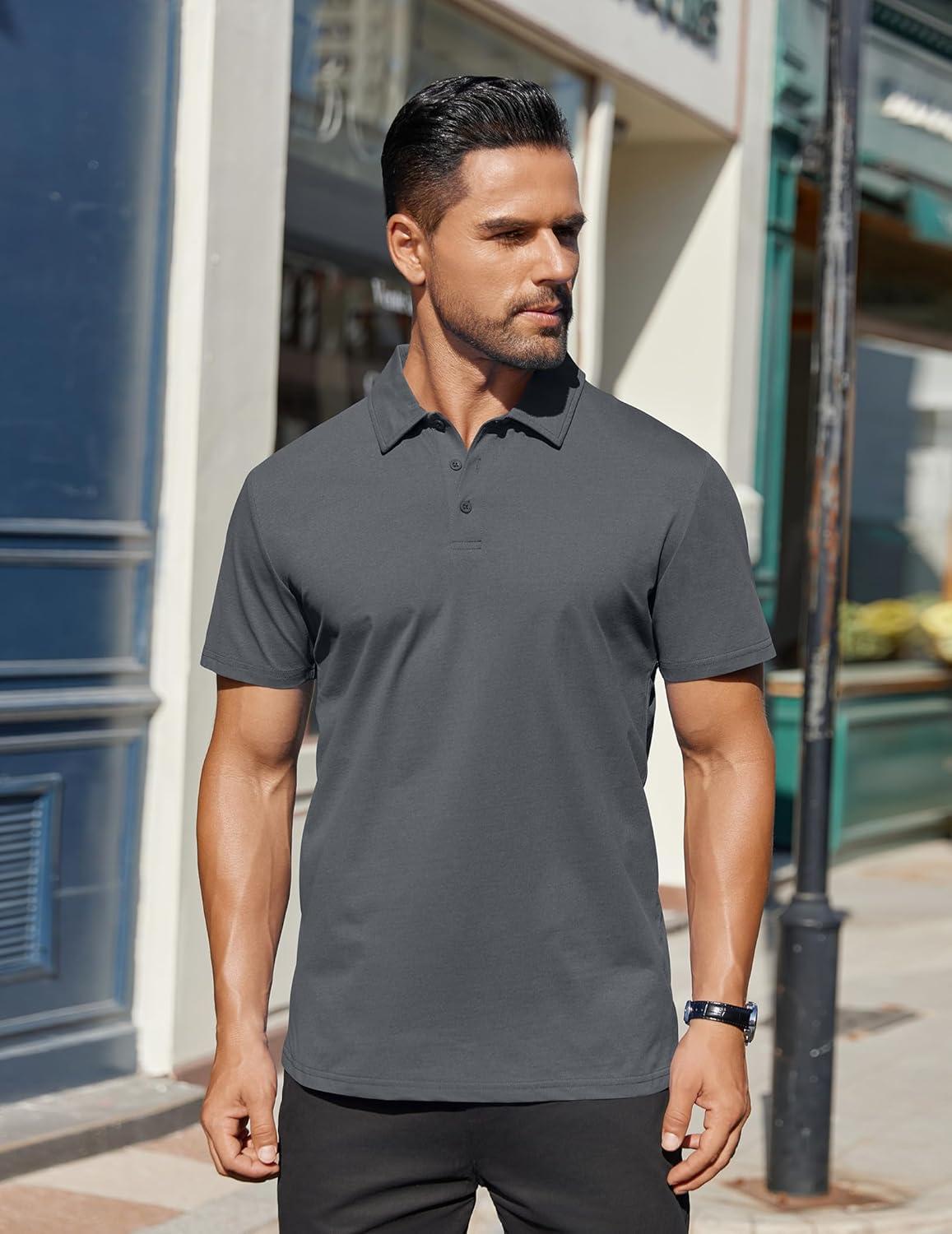 COOFANDY Men’s Polo Shirts Short Sleeve Moisture Wicking Golf Shirt Fashion Casual Collared T-Shirt(Dark Grey)