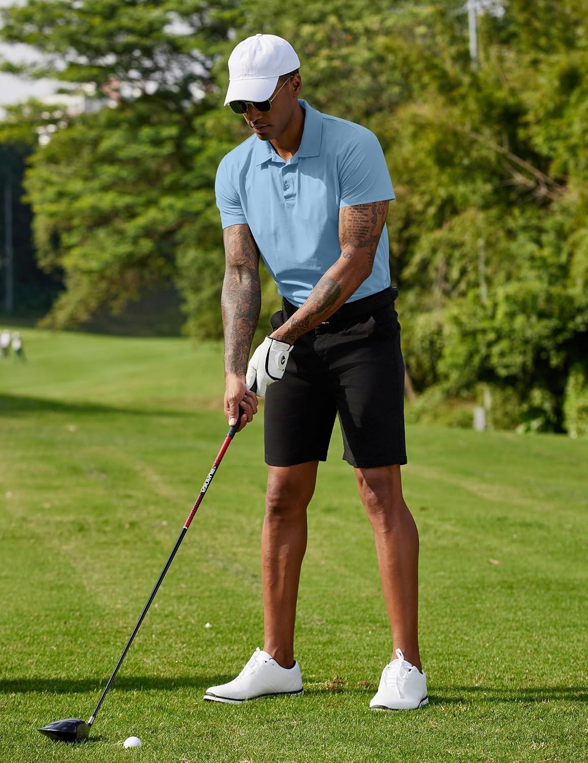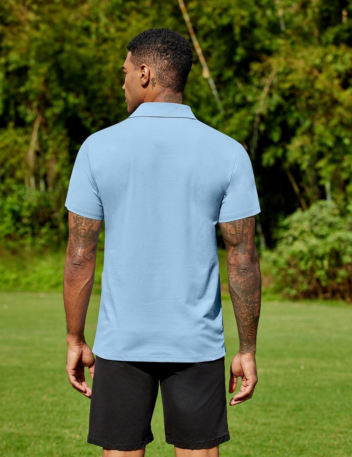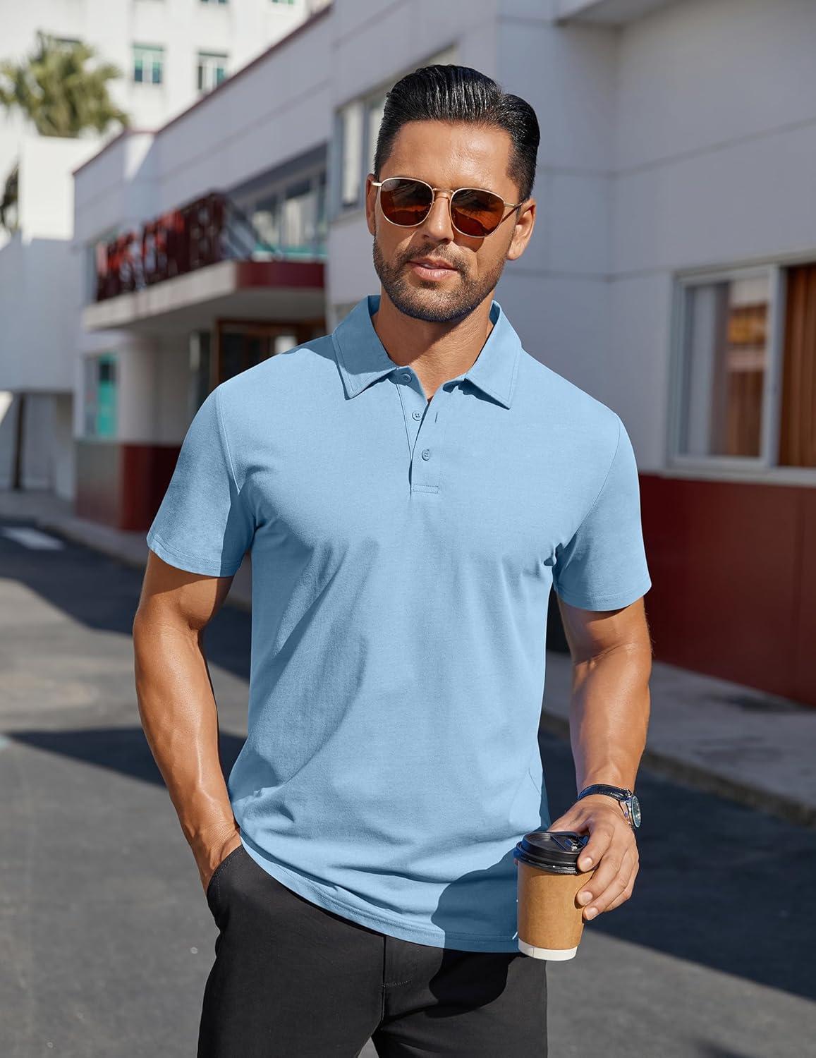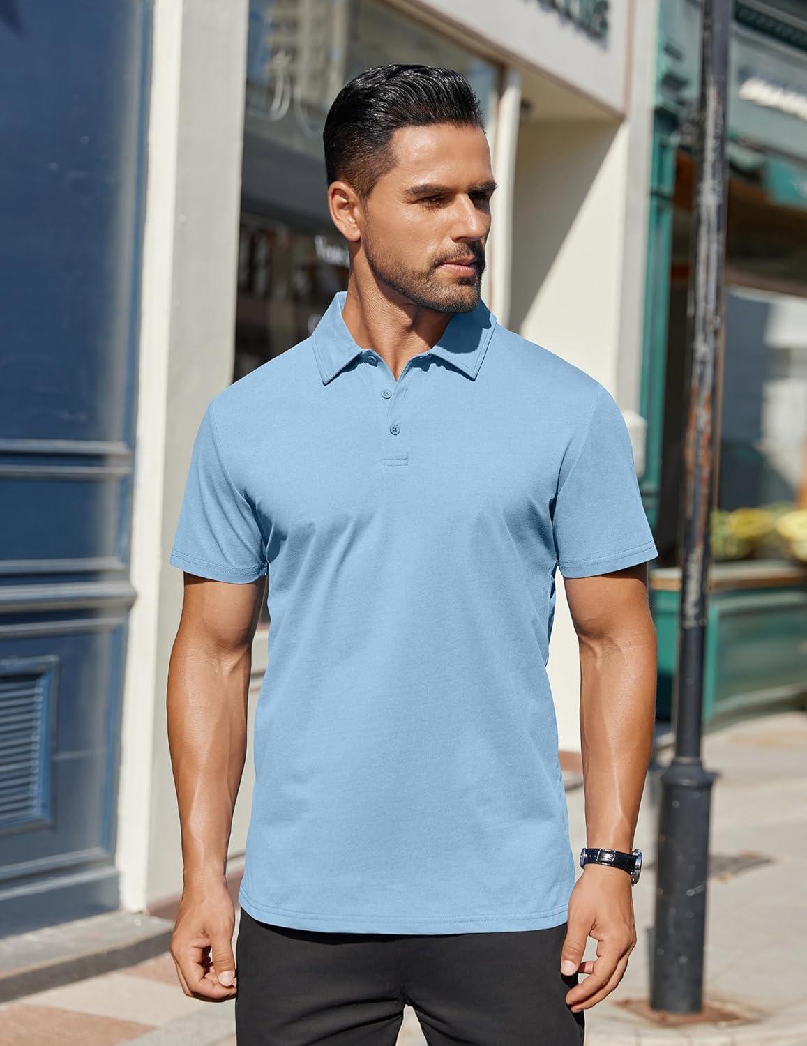 COOFANDY Men’s Polo Shirts Short Sleeve Moisture Wicking Golf Shirt Fashion Casual Collared T-Shirt(Light Blue)