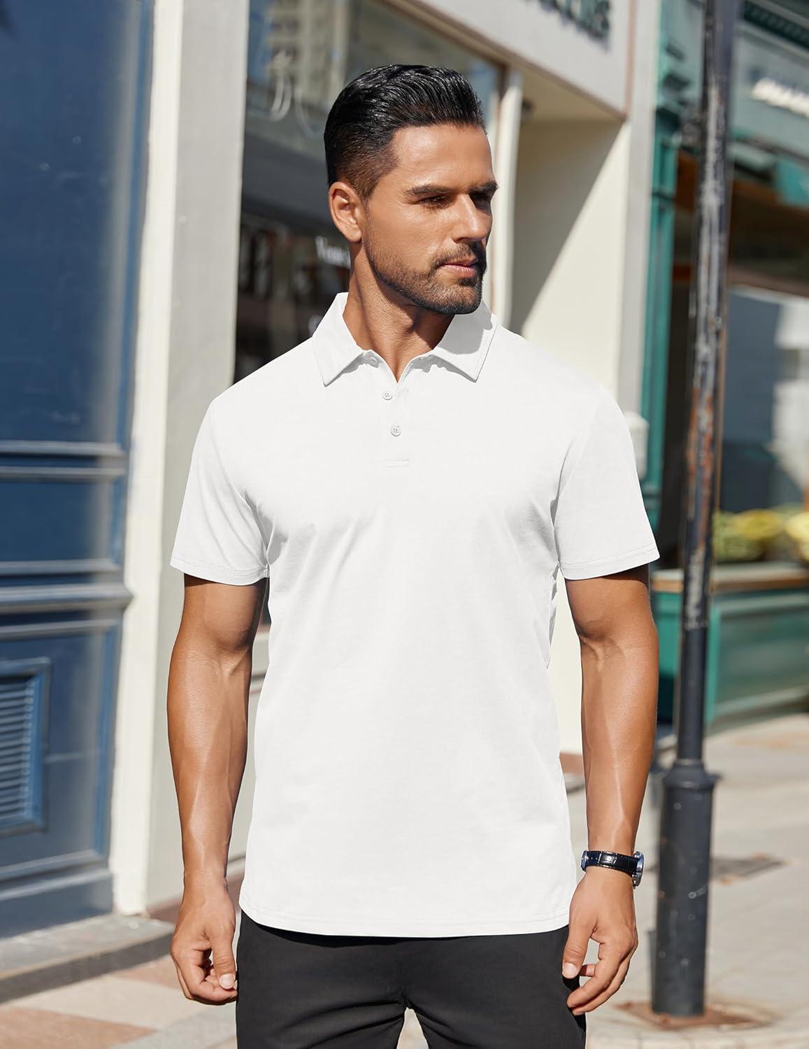 COOFANDY Men’s Polo Shirts Short Sleeve Moisture Wicking Golf Shirt Fashion Casual Collared T-Shirt(White)