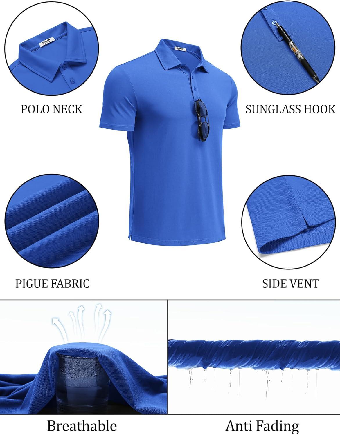 COOFANDY Men’s Polo Shirts Short Sleeve Pique Jersey Golf Shirt Casual Summer Collared T-Shirts(Blue)