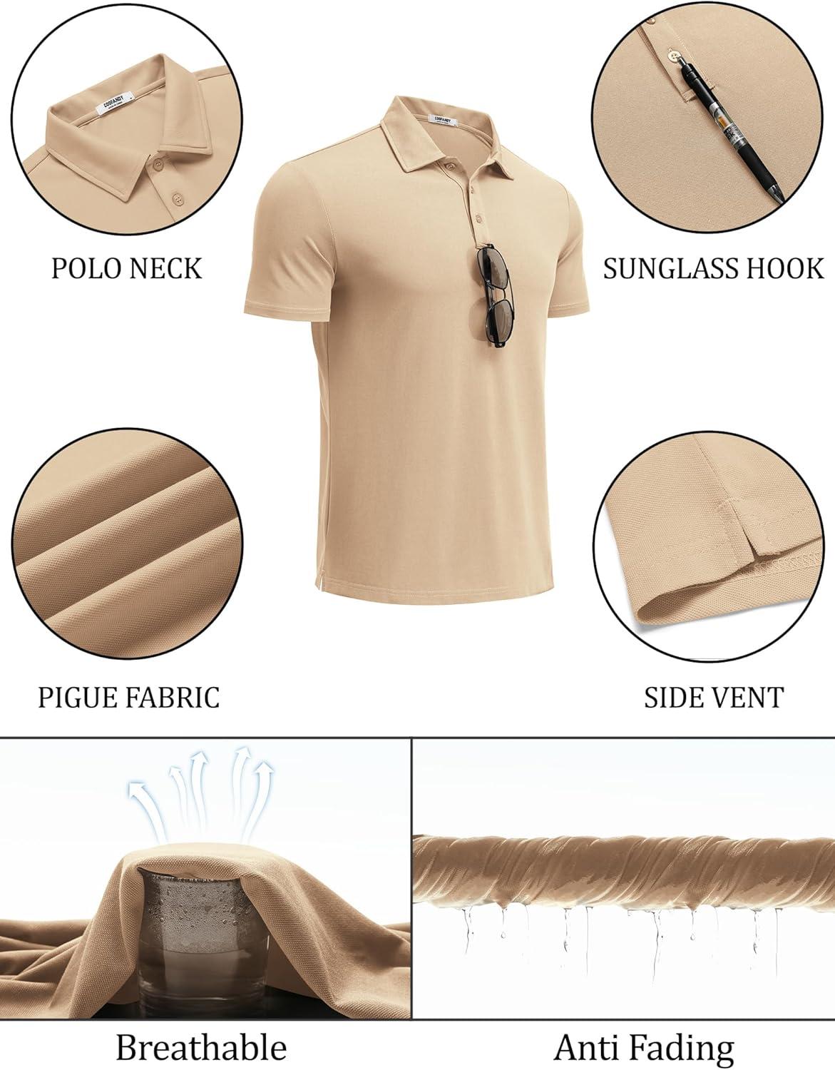 COOFANDY Men’s Polo Shirts Short Sleeve Pique Jersey Golf Shirt Casual Summer Collared T-Shirts(Khaki)