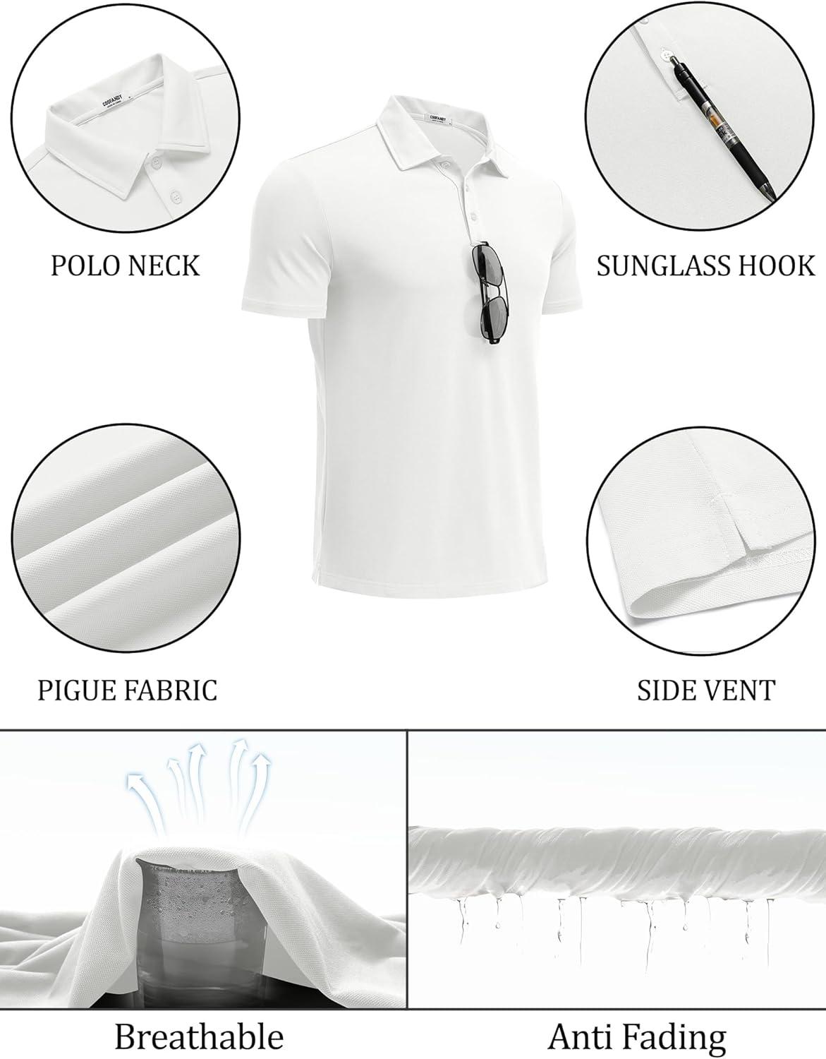 COOFANDY Men’s Polo Shirts Short Sleeve Pique Jersey Golf Shirt Casual Summer Collared T-Shirts(White)