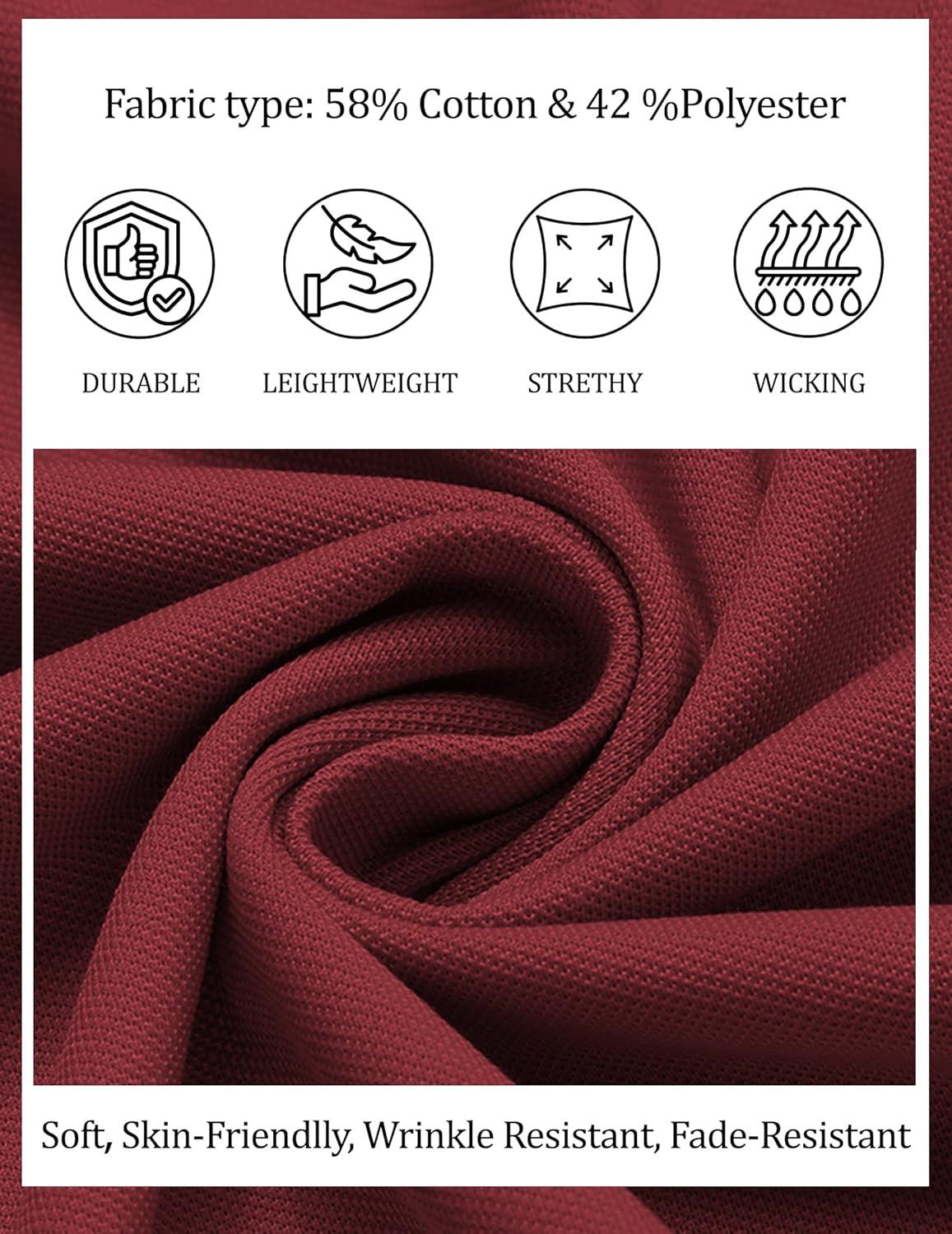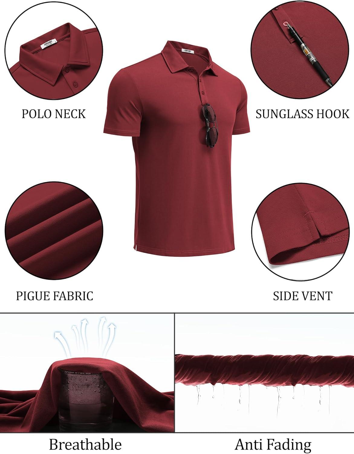 COOFANDY Men’s Polo Shirts Short Sleeve Pique Jersey Golf Shirt Casual Summer Collared T-Shirts(Wine Red)