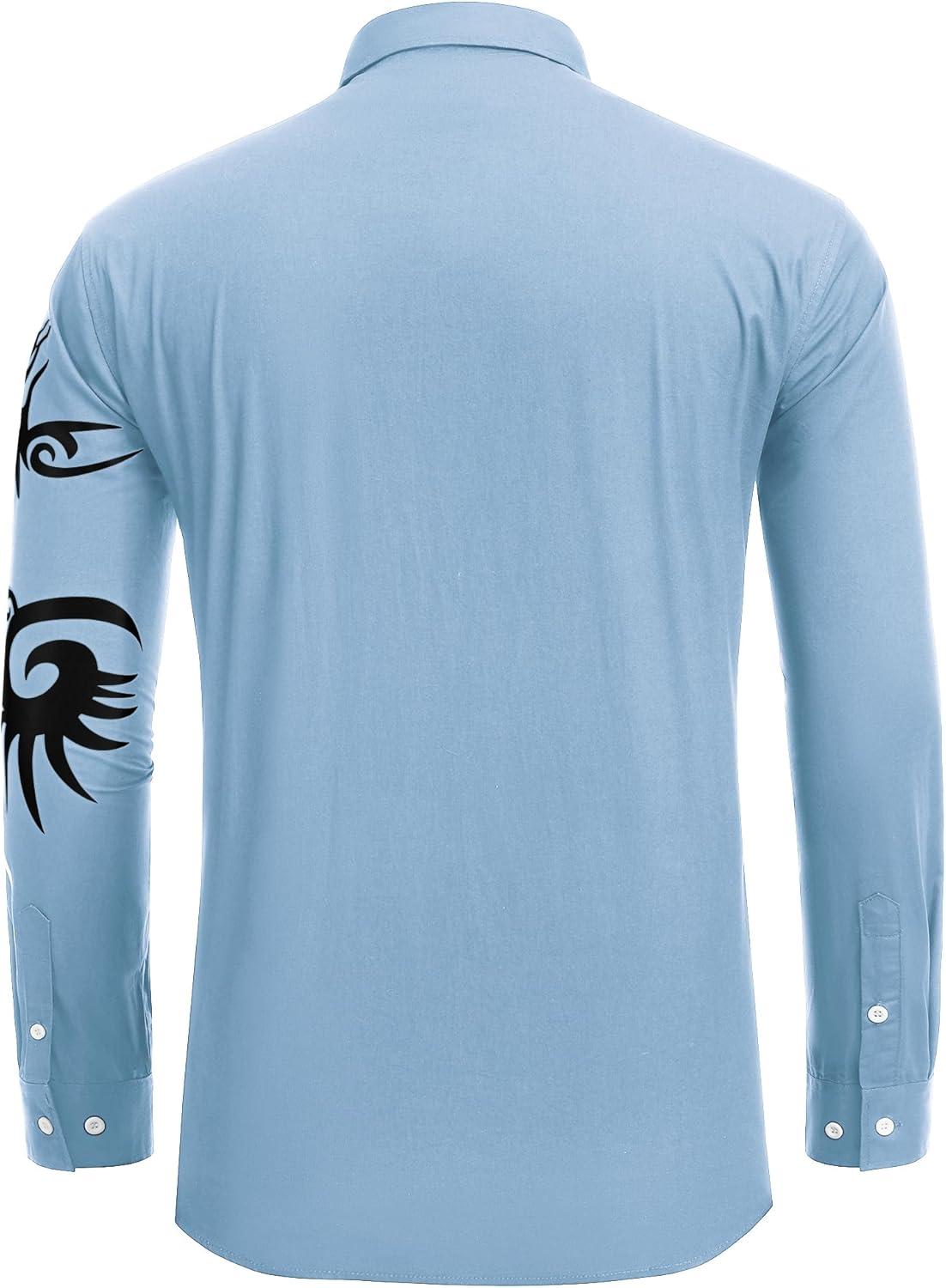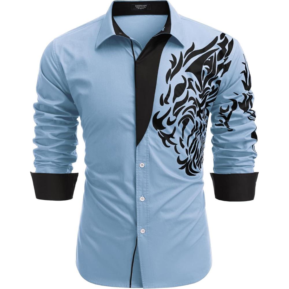 COOFANDY Men’s Print Button Down Dress Shirt Fashion Long Sleeve Casual Shirts(Blue (Tiger))