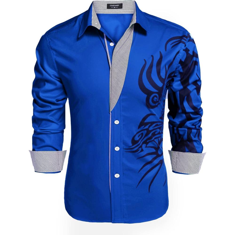 COOFANDY Men’s Print Button Down Dress Shirt Fashion Long Sleeve Casual Shirts(Royal Blue)