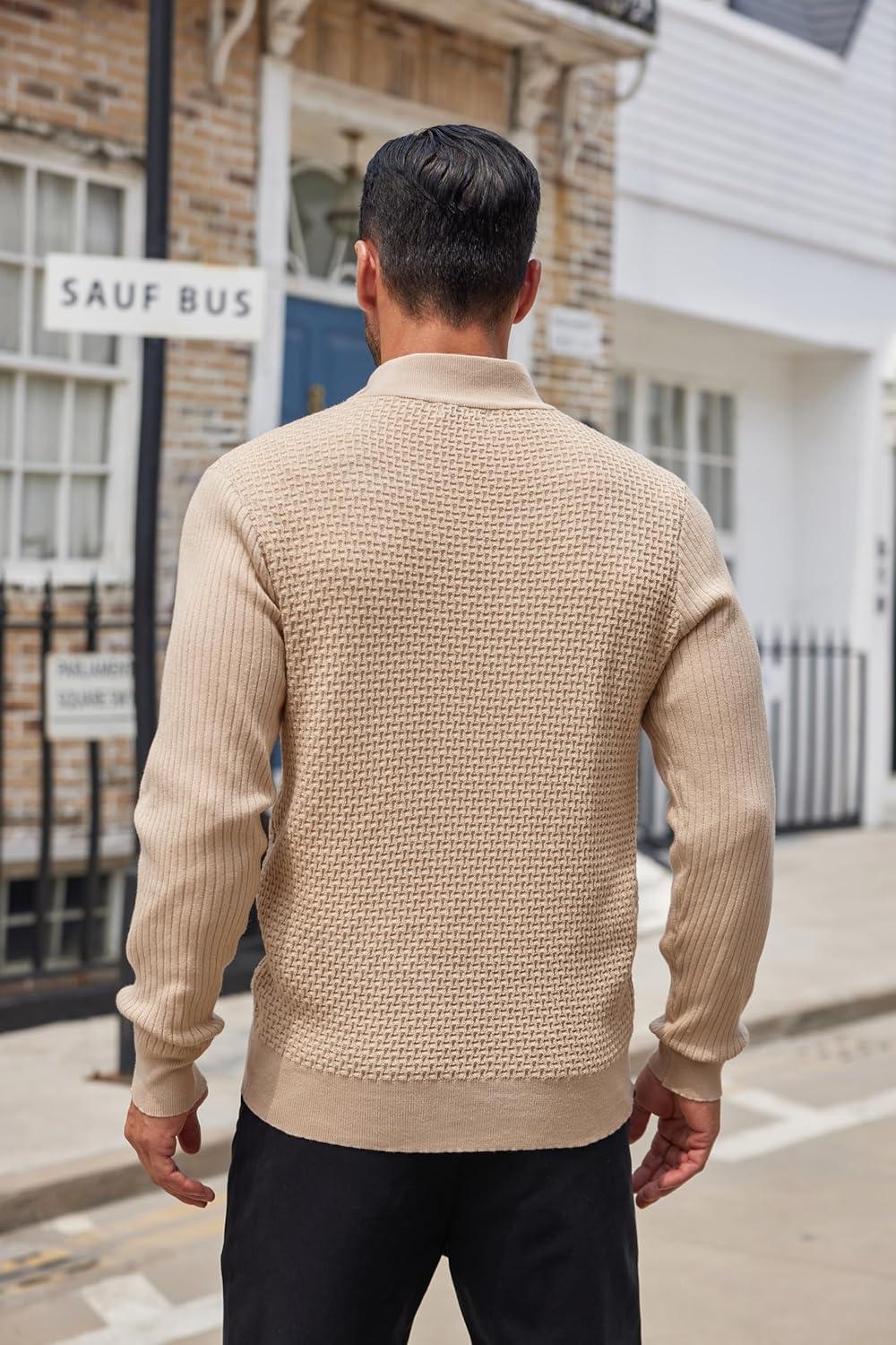 COOFANDY Men’s Quarter Button Sweater Lightweight Mock Neck Pullover Sweater Fashion Casual Knitted Waffle Henley Sweater(Apricot)