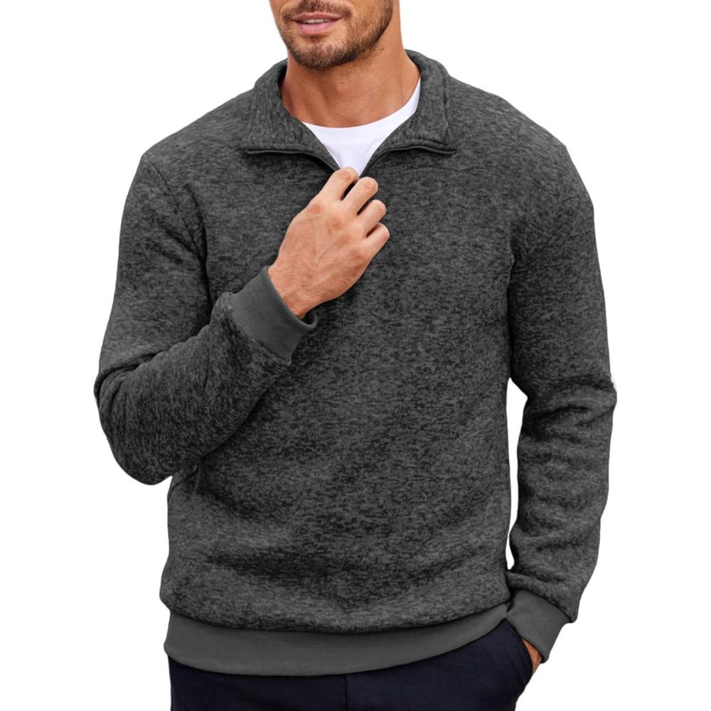 COOFANDY Men’s Quarter Zip Pullover Casual Long Sleeve Sweater Slim Fit Sweater Mock Neck Polo Sweater(Dark Gray)
