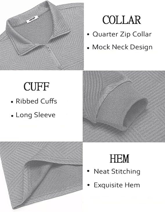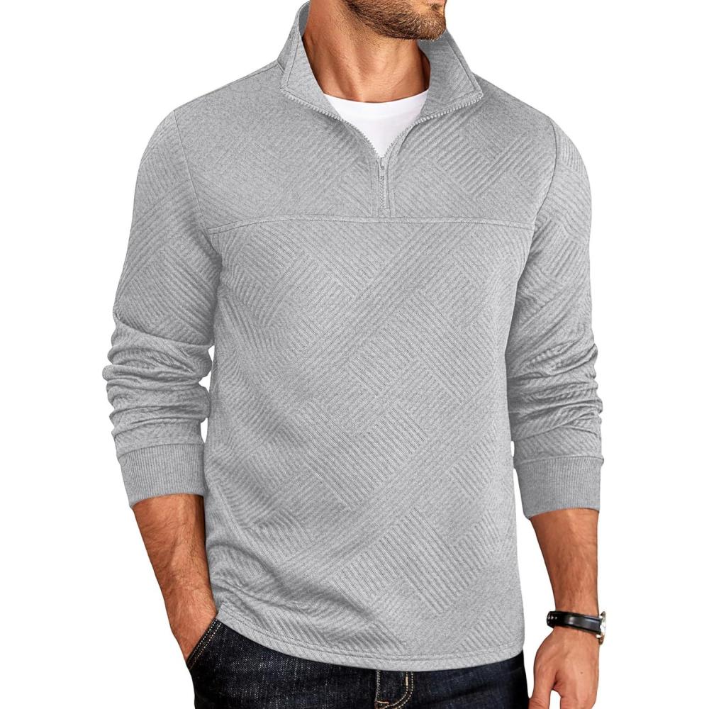 COOFANDY Men’s Quarter Zip Pullover Lightweight Textured T-Shirts Long Sleeve Casual Mock Neck Polo Shirts(Light Grey)