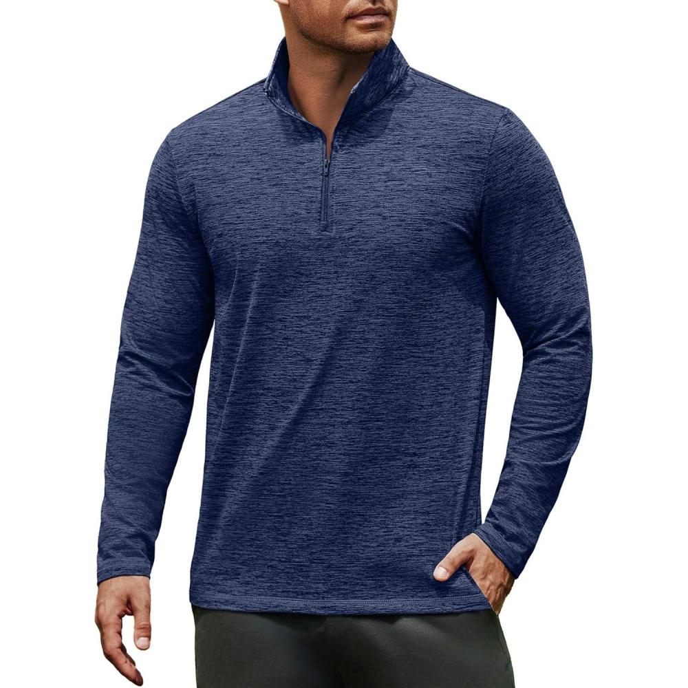 COOFANDY Men’s Quarter Zip Pullover Long Sleeve Sweatshirt 1/4 Zip Golf Shirt Winter Fleece Lined Thermal Pullover(Navy Blue)