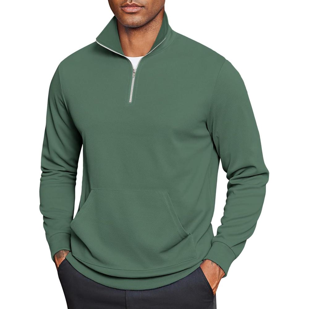 COOFANDY Mens Quarter Zip Pullover Mock Neck Sweatshirt Long Sleeve Sweater Polo Half Zip Pullover with Pocket(Green)