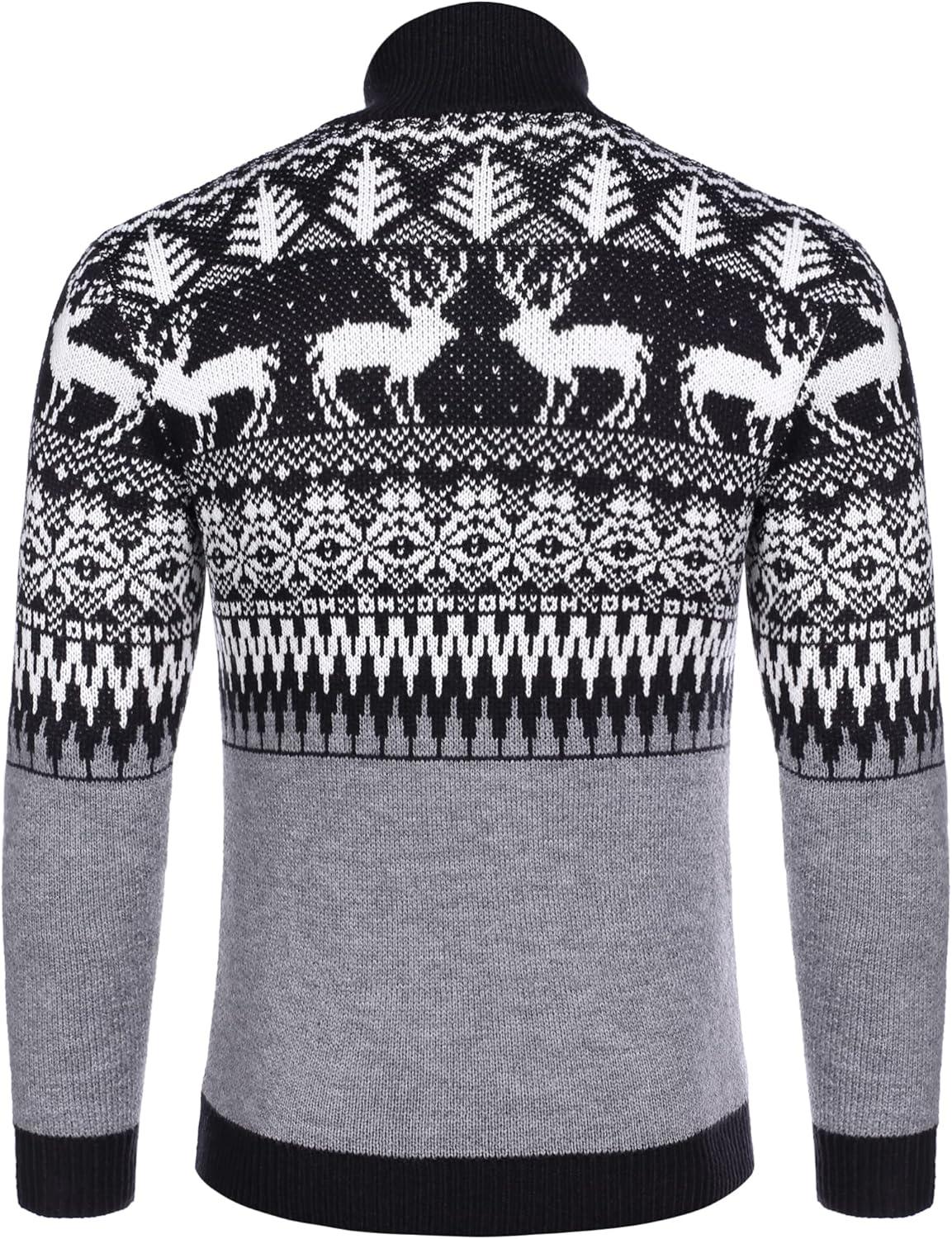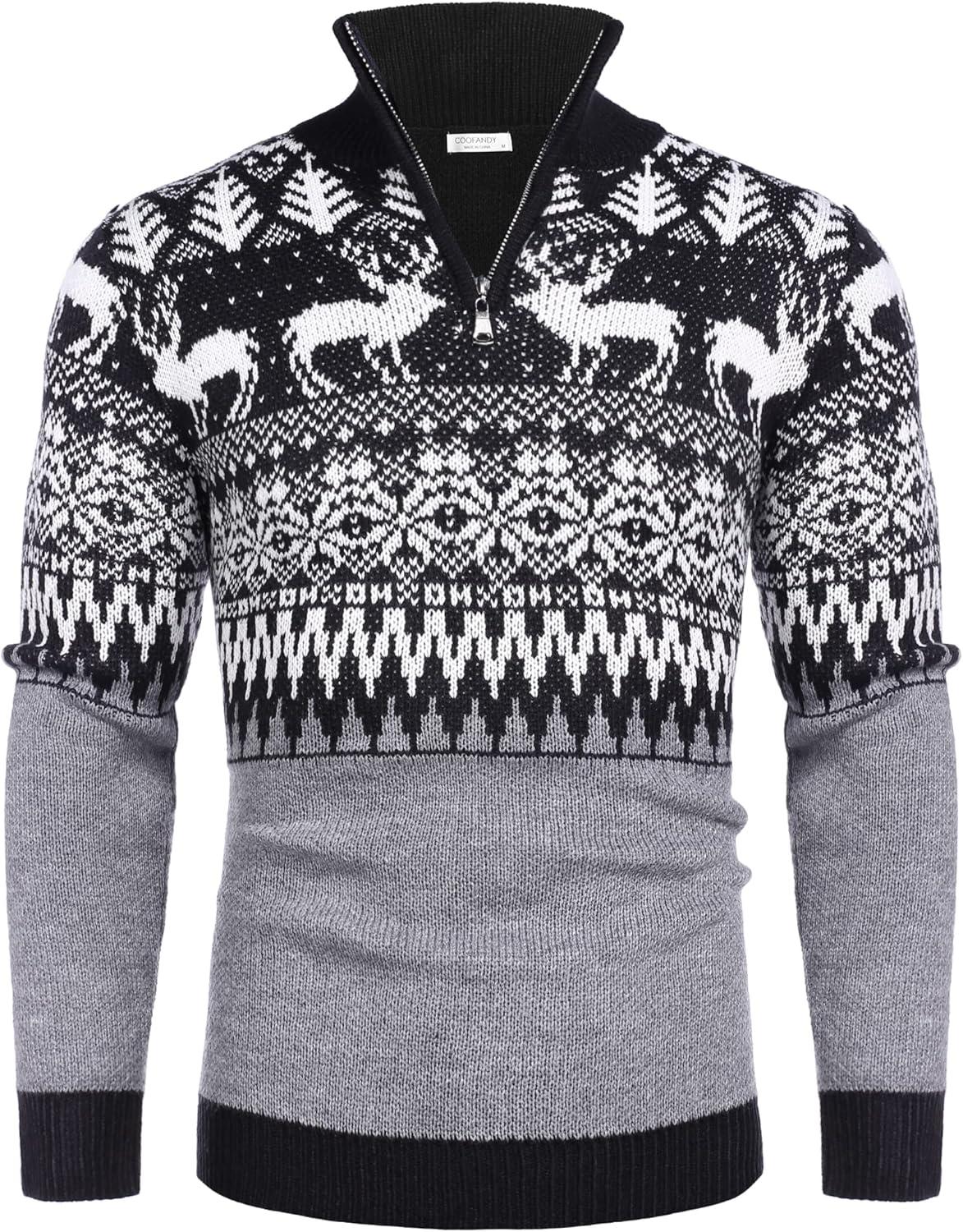 COOFANDY Men’s Quarter Zip Pullover Sweater Casual Zip Up Polo Sweater Knit(Pat1 Christmas)