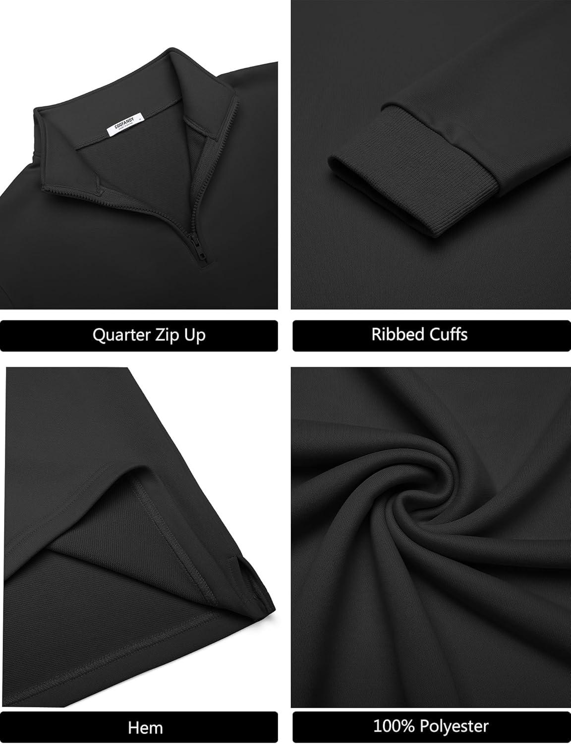 COOFANDY Men's Quarter-Zip Pullover Lightweight Mock Neck Sweatshirt Slim Fit Casual Long Sleeve Sweatshirt Engineered with premium polyester fleece fabric, men's quarter zip quilted sweatshirt withstands multi washes without pilling/deformation. The 1/4 zip closure and mock neck create 3 styling modes in 5 seconds: Full-zip pullover with dress shirts: Boardroom ready Half-zip sweatshirts with joggers: Gym performance unlocked Fahion side vents: Unrestricted golf swings COOFANDY Men's Quarter Pullover Lightweight 1/4 Zip Long Sleeve Sweatshirt Half Zipper Fleece Sweater Men's lightweight 1/4 zip pullover featuring 11 colors, its soft and thermal design ensures all-day comfort while the half-zip neckline allows adjustable ventilation. Features quarter zip pullover men, mens quarter zip pullover, 1/4 fleece pullover mens, mens 1/4 zip pullover, 3/4 zip pullover mensr mens quarter zip sweatshirt, sweatshirts for men, mens sweatshirt, mens 1/4 zip sweatshirt, men's quarter zip sweatshirts, quarter zip sweatshirt men Mock neck, long sleeves, slim fit Soft, lightweight, skin-friendly, comfortable, stretchy Office, business, casual daily, date, streetwear, travel Men's Quarter Zip Pullover Sweatshirt Size Chart: S M L XL 2XL 3XL S Size: Chest: 42.9″/ Shoulder: 18.4″/ Sleeve: 25.2″/ Center Back Length: 27.0″ M Size: Chest: 44.9″ Shoulder: 18.9″/ Sleeve: 25.6″/ Center Back Length: 27.6″ L Size: Chest:47.9″/ Shoulder: 19.6″/ Sleeve: 26.0″/ Center Back Length: 28.1″ XL Size: Chest: 50.9″/ Shoulder: 20.3″/ Sleeve: 26.4″/ Center Back Length: 28.7″ XXL Size: Chest: 53.9″/ Shoulder: 21″/ Sleeve: 26.8″/ Center Back Length: 29.3″ 3XL Size: Chest: 56.9″/ Shoulder: 21.7″/ Sleeve: 26.8″/ Center Back Length: 29.3″ Tell Us If you have any questions with coofandy mens quarter zip up pullover, please contact us to ensure you have a wonderful shopping experience!