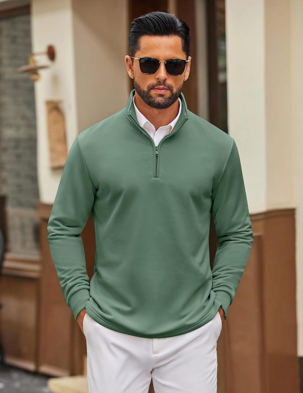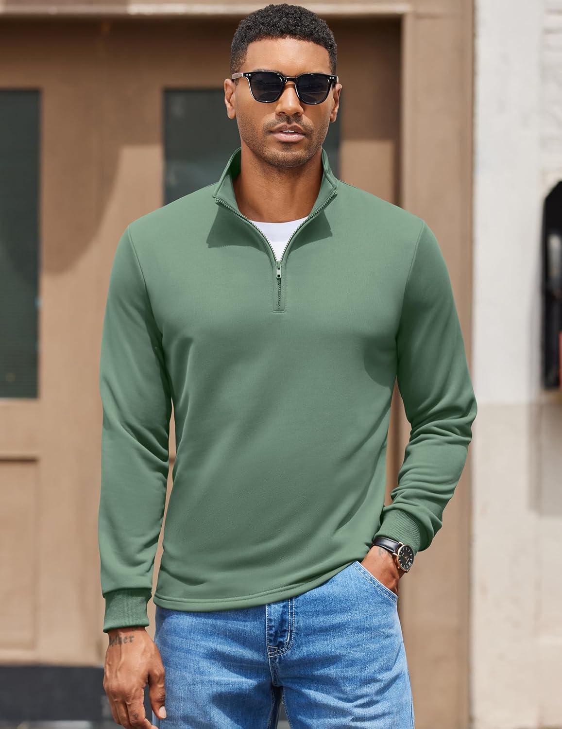 COOFANDY Men's Quarter-Zip Pullover Lightweight Mock Neck Sweatshirt Slim Fit Casual Long Sleeve Sweatshirt Engineered with premium polyester fleece fabric, men's quarter zip quilted sweatshirt withstands multi washes without pilling/deformation. The 1/4 zip closure and mock neck create 3 styling modes in 5 seconds: Full-zip pullover with dress shirts: Boardroom ready Half-zip sweatshirts with joggers: Gym performance unlocked Fahion side vents: Unrestricted golf swings COOFANDY Men's Quarter Pullover Lightweight 1/4 Zip Long Sleeve Sweatshirt Half Zipper Fleece Sweater Men's lightweight 1/4 zip pullover featuring 11 colors, its soft and thermal design ensures all-day comfort while the half-zip neckline allows adjustable ventilation. Features quarter zip pullover men, mens quarter zip pullover, 1/4 fleece pullover mens, mens 1/4 zip pullover, 3/4 zip pullover mensr mens quarter zip sweatshirt, sweatshirts for men, mens sweatshirt, mens 1/4 zip sweatshirt, men's quarter zip sweatshirts, quarter zip sweatshirt men Mock neck, long sleeves, slim fit Soft, lightweight, skin-friendly, comfortable, stretchy Office, business, casual daily, date, streetwear, travel Men's Quarter Zip Pullover Sweatshirt Size Chart: S M L XL 2XL 3XL S Size: Chest: 42.9″/ Shoulder: 18.4″/ Sleeve: 25.2″/ Center Back Length: 27.0″ M Size: Chest: 44.9″ Shoulder: 18.9″/ Sleeve: 25.6″/ Center Back Length: 27.6″ L Size: Chest:47.9″/ Shoulder: 19.6″/ Sleeve: 26.0″/ Center Back Length: 28.1″ XL Size: Chest: 50.9″/ Shoulder: 20.3″/ Sleeve: 26.4″/ Center Back Length: 28.7″ XXL Size: Chest: 53.9″/ Shoulder: 21″/ Sleeve: 26.8″/ Center Back Length: 29.3″ 3XL Size: Chest: 56.9″/ Shoulder: 21.7″/ Sleeve: 26.8″/ Center Back Length: 29.3″ Tell Us If you have any questions with coofandy mens quarter zip up pullover, please contact us to ensure you have a wonderful shopping experience!