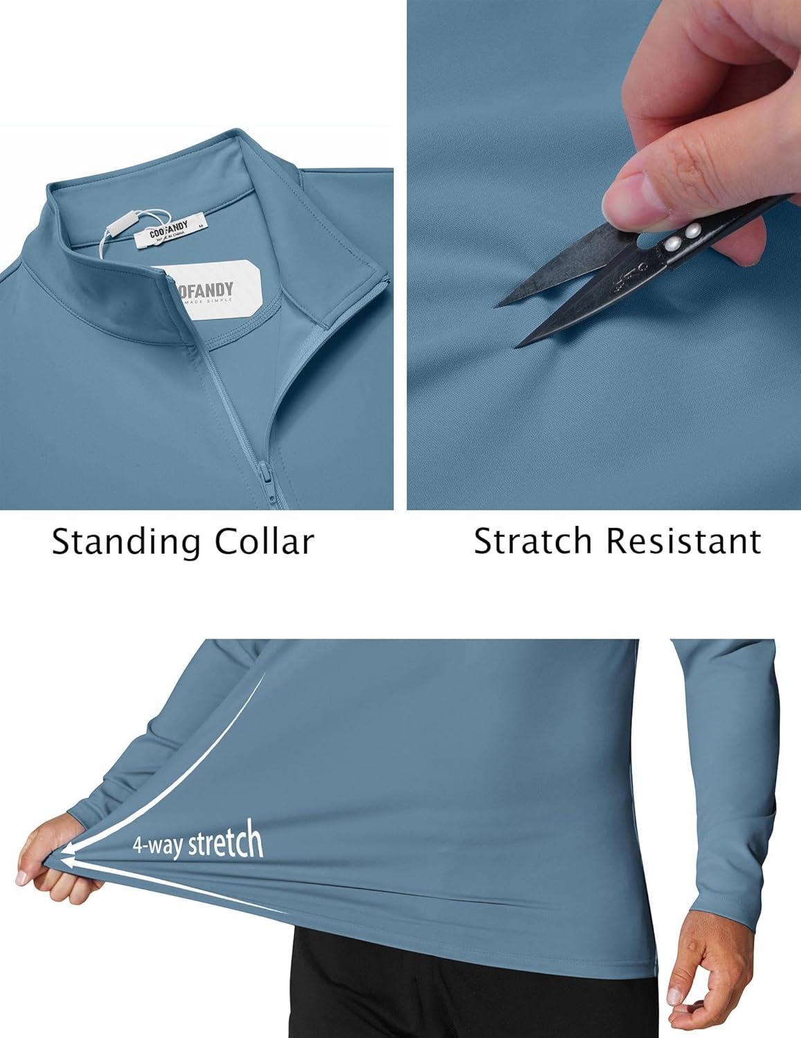 COOFANDY Mens Quarter Zip Pullover Sweatshirt UPF 50+ Long Sleeve Sun Protection Shirts Golf Running Rash Guard T-Shirts(Deep Blue)