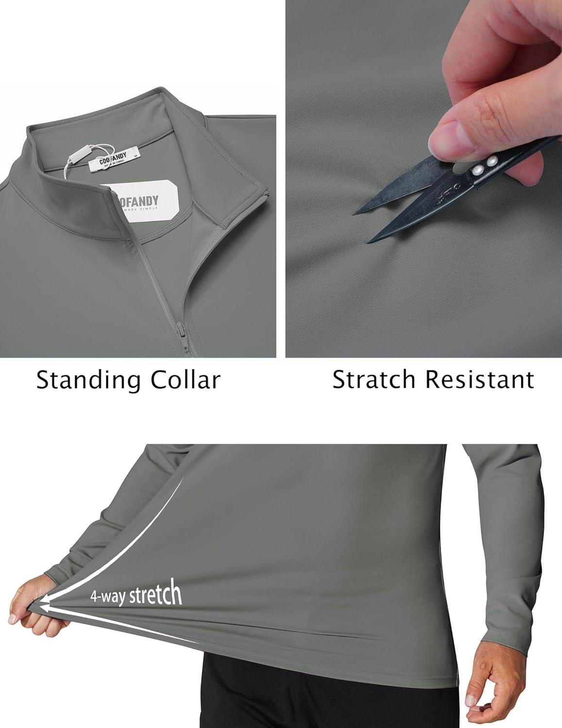 COOFANDY Mens Quarter Zip Pullover Sweatshirt UPF 50+ Long Sleeve Sun Protection Shirts Golf Running Rash Guard T-Shirts(Grey)