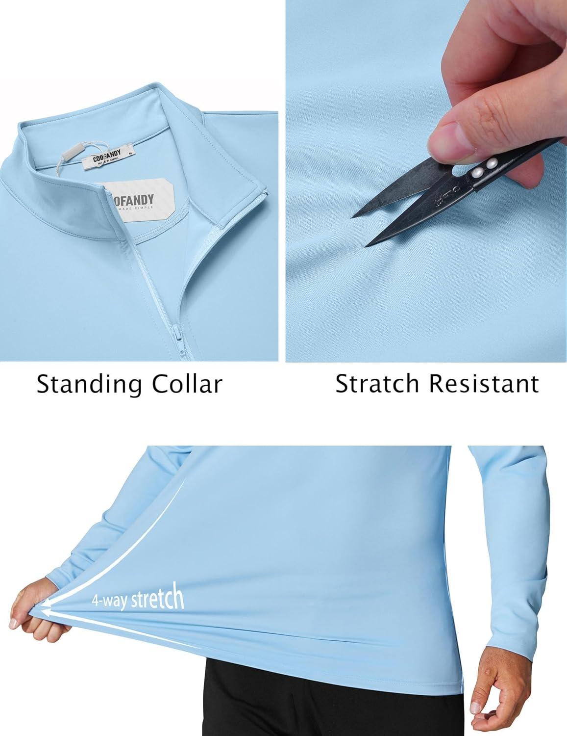 COOFANDY Mens Quarter Zip Pullover Sweatshirt UPF 50+ Long Sleeve Sun Protection Shirts Golf Running Rash Guard T-Shirts(Light Blue)