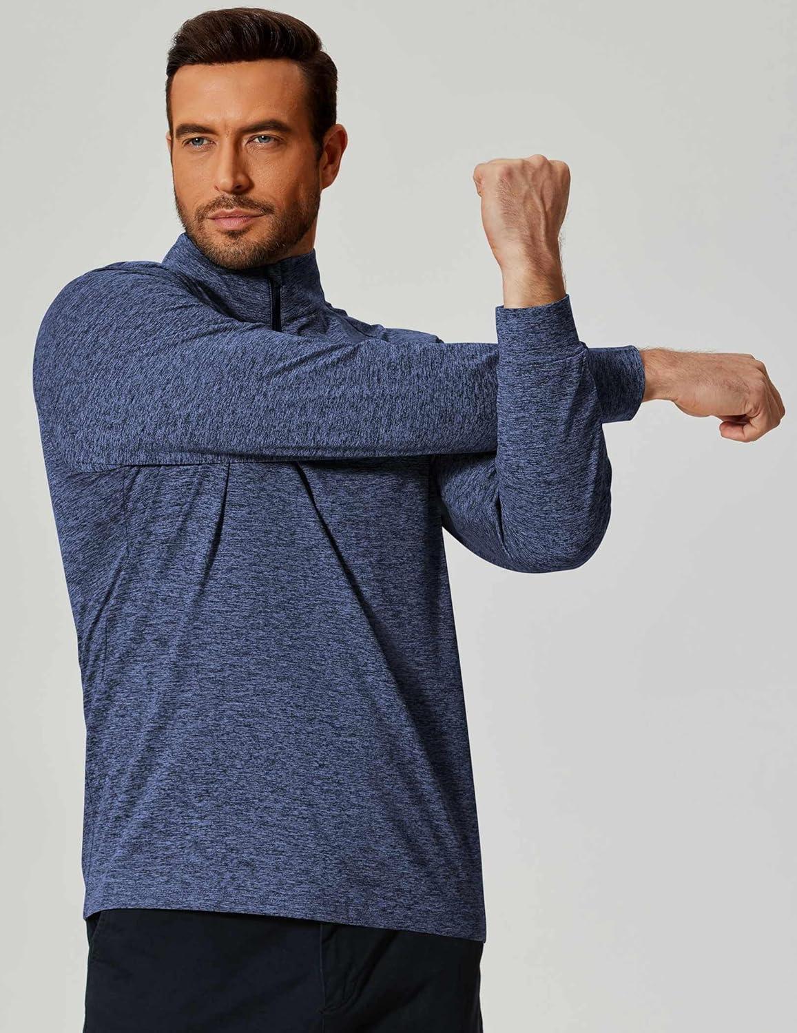 COOFANDY Men’s Quarter Zip Shirts Workout Fleece Lined Lightweight Long Sleeve Pullover Sweatshirts(Navy Blue)