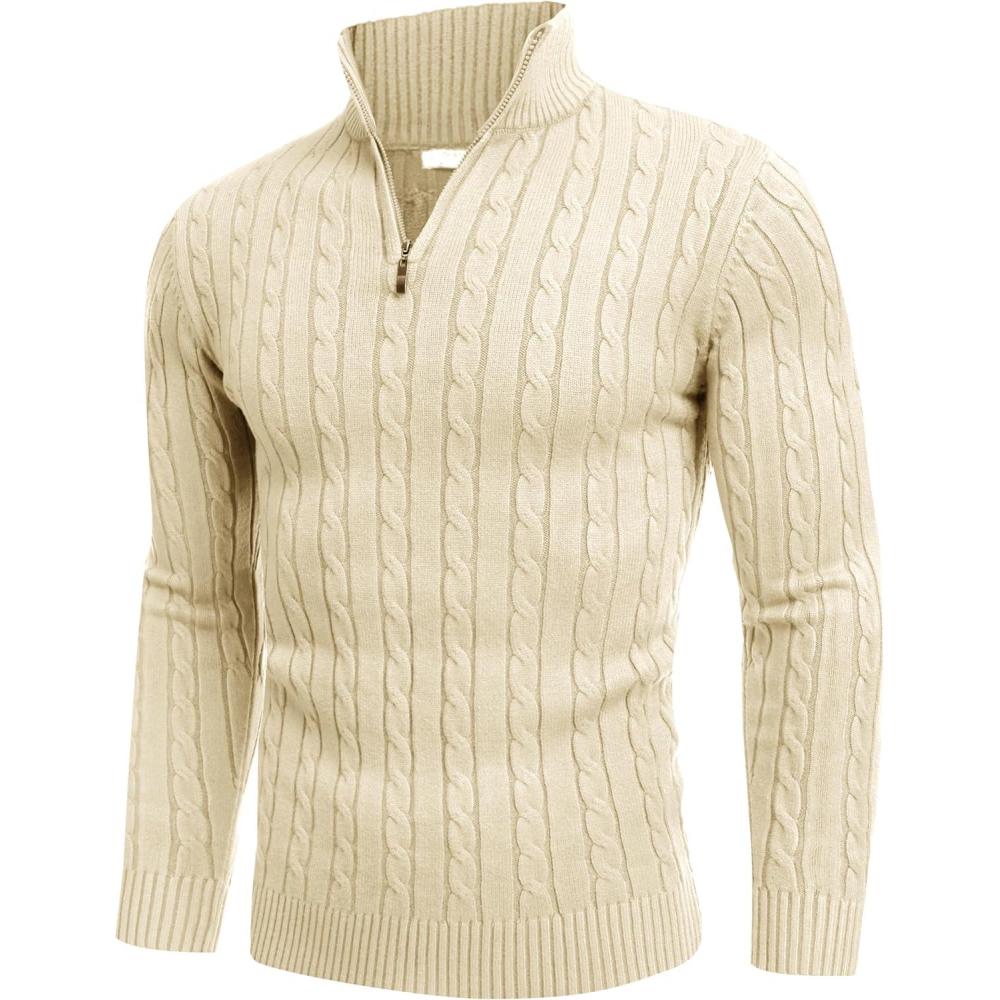COOFANDY Men’s Quarter Zip Sweater Slim Fit Casual Knitted Turtleneck Pullover Mock Neck Polo Sweater(Light Khaki)