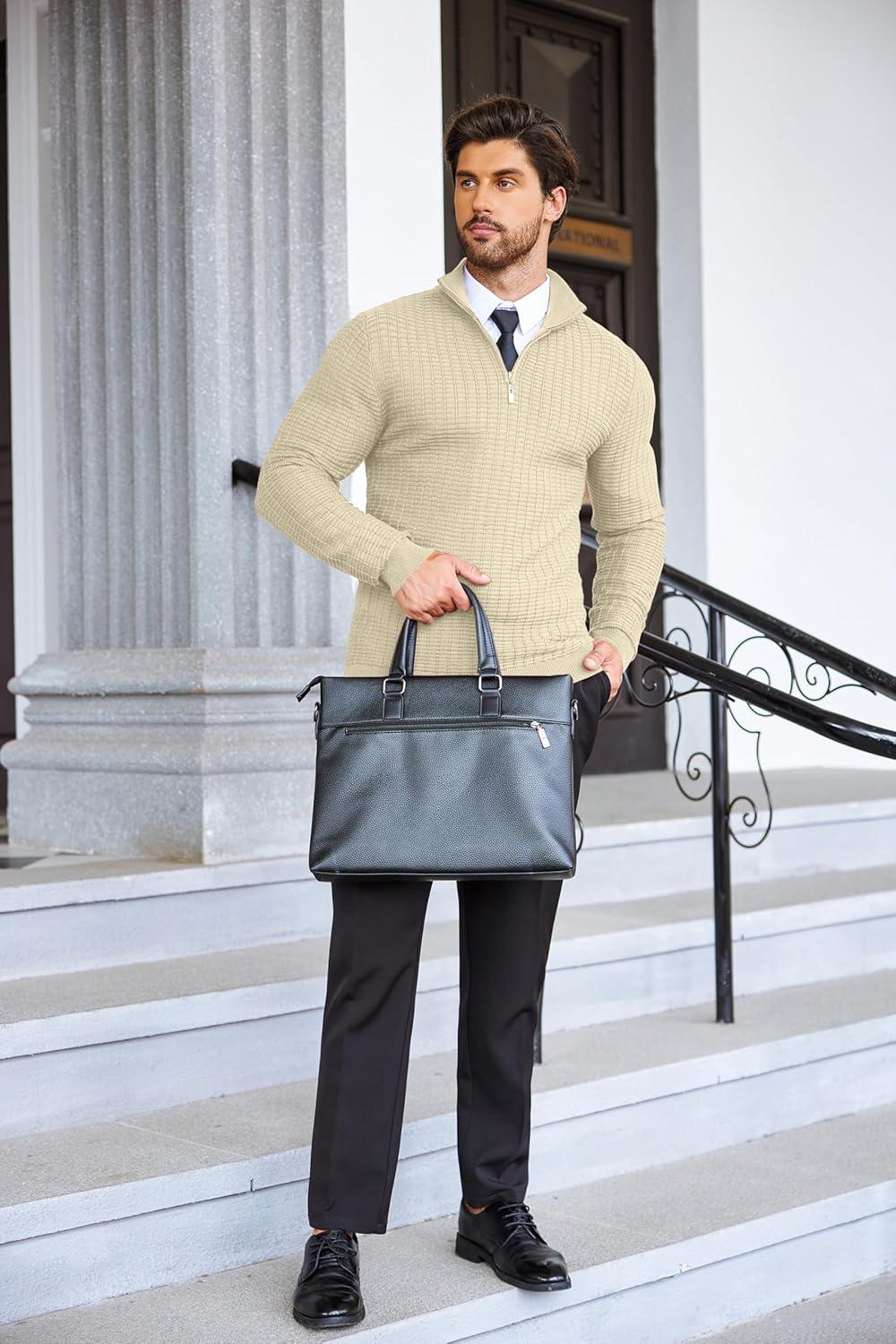 COOFANDY Men’s Quarter Zip Sweaters Slim Fit Lightweight Cotton Knitted Casual Mock Neck Pullover Sweaters(Beige)