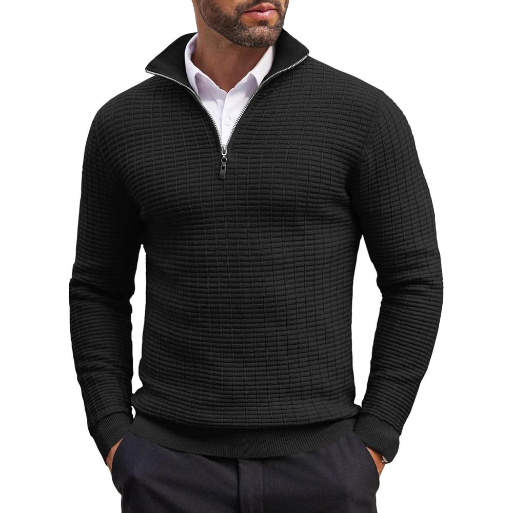 COOFANDY Men’s Quarter Zip Sweaters Slim Fit Lightweight Cotton Knitted Casual Mock Neck Pullover Sweaters(Black)