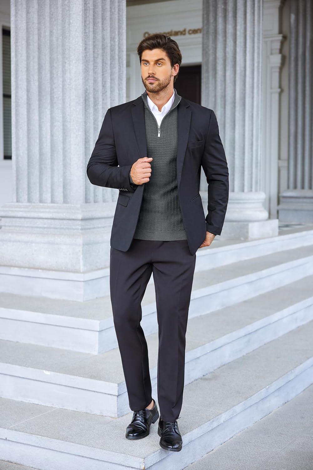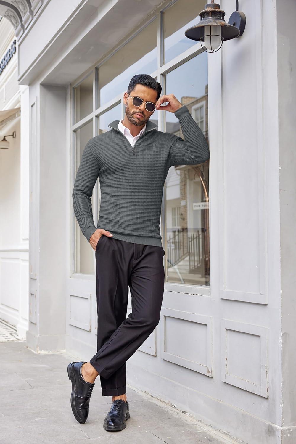 COOFANDY Men’s Quarter Zip Sweaters Slim Fit Lightweight Cotton Knitted Casual Mock Neck Pullover Sweaters(Gray)