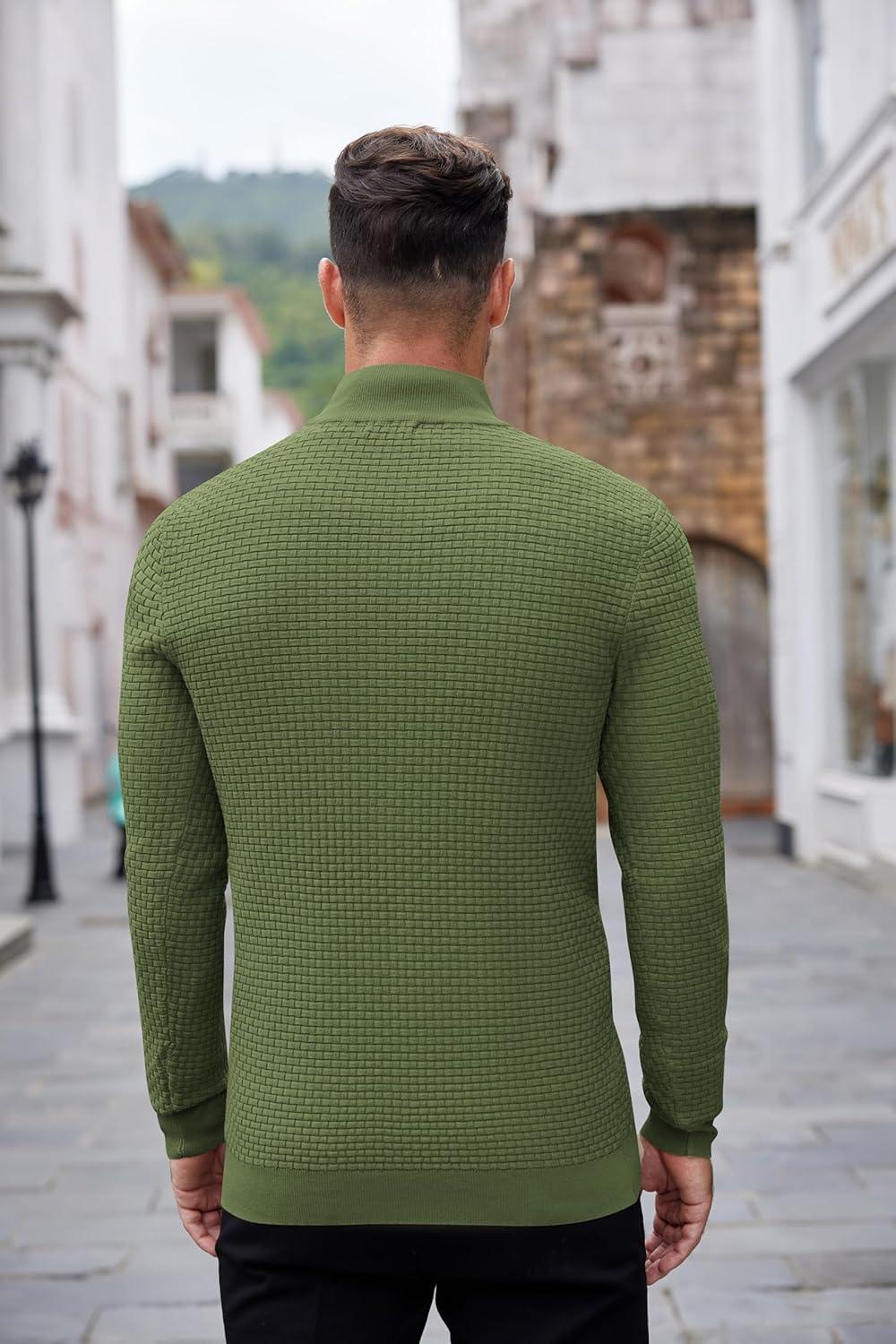 COOFANDY Men’s Quarter Zip Sweaters Slim Fit Lightweight Knitted Mock Neck Pullover Casual Polo Sweaters(Army Green)