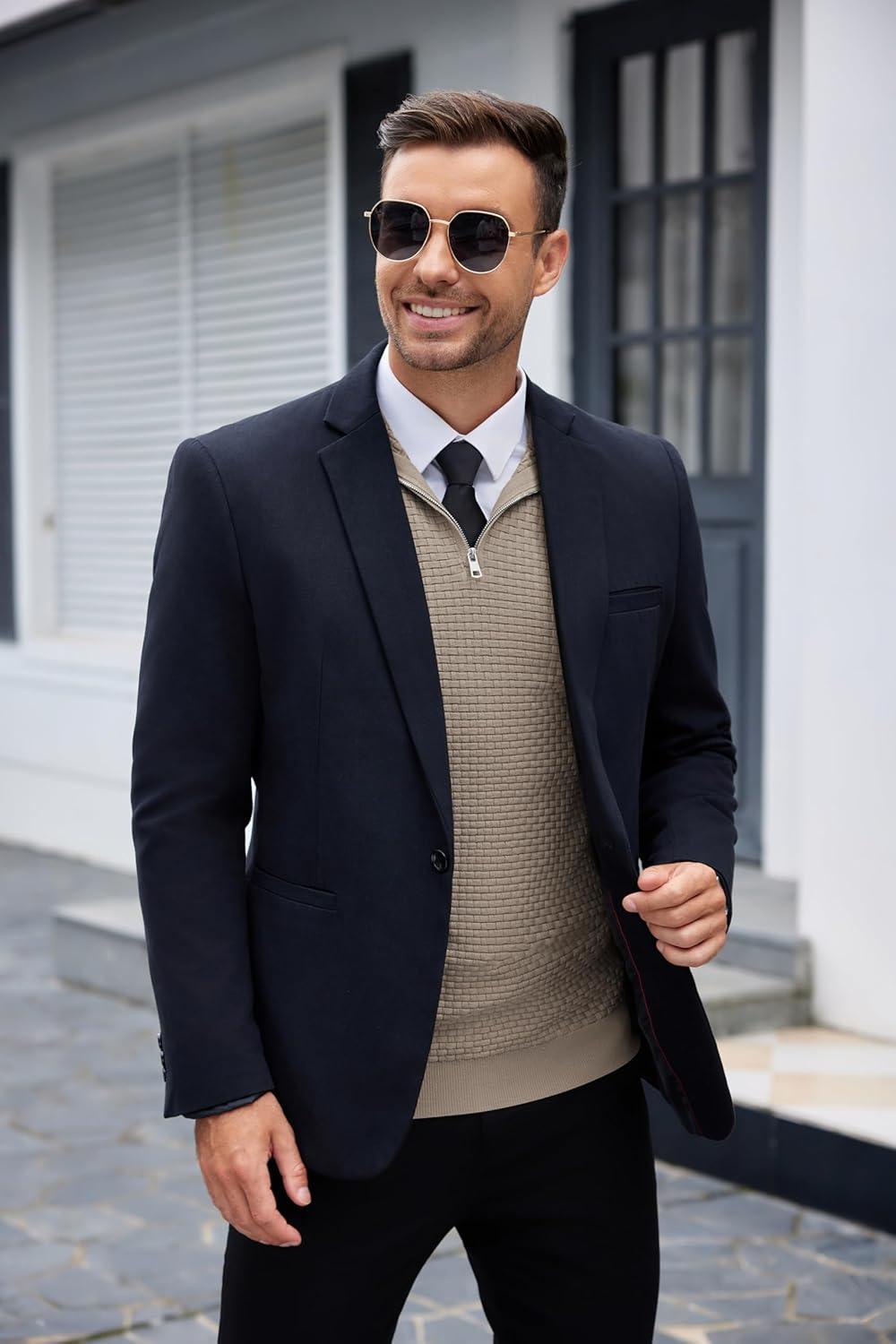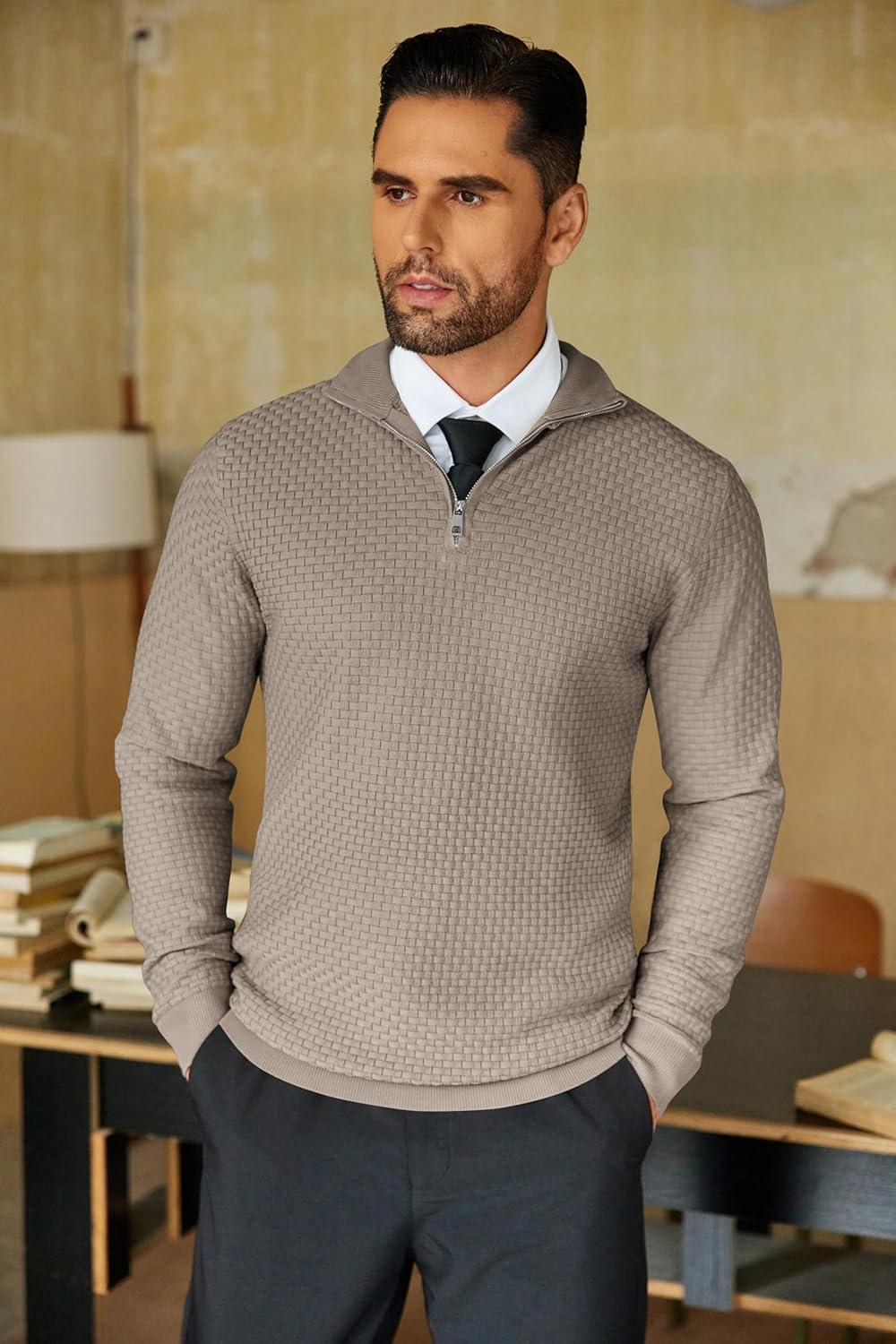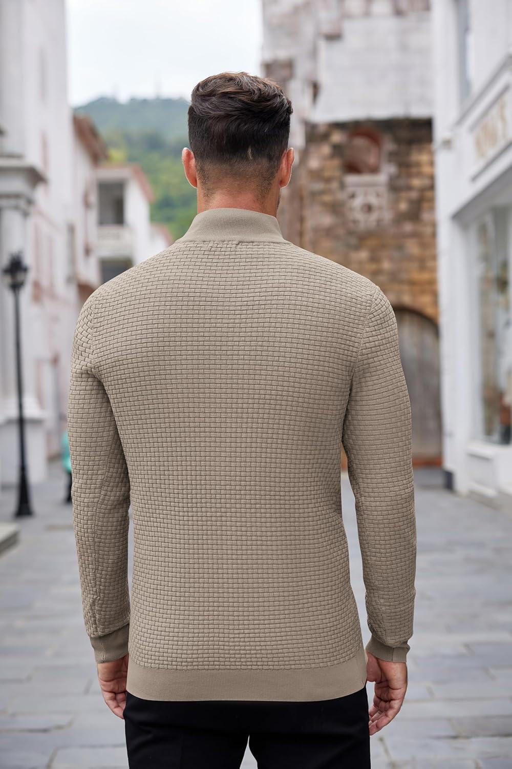 COOFANDY Men’s Quarter Zip Sweaters Slim Fit Lightweight Knitted Mock Neck Pullover Casual Polo Sweaters(Dark Khaki)