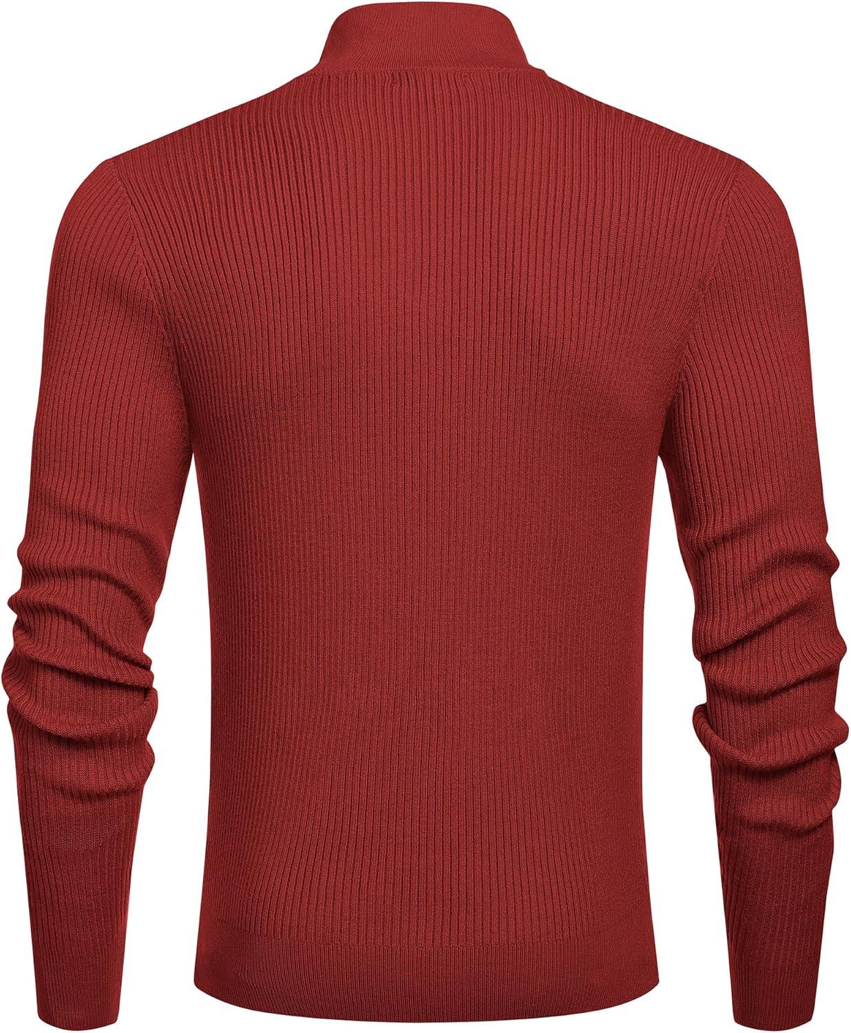 COOFANDY Men’s Quarter Zip Sweaters Slim Fit Mock Neck Pullover Sweaters Lightweight Knitted Polo Sweater(Red)