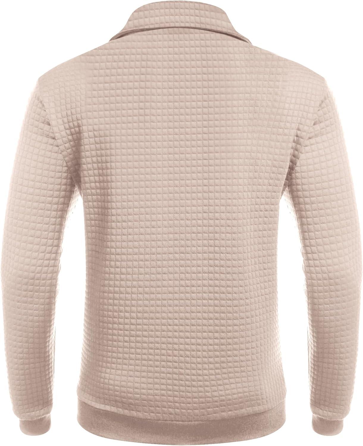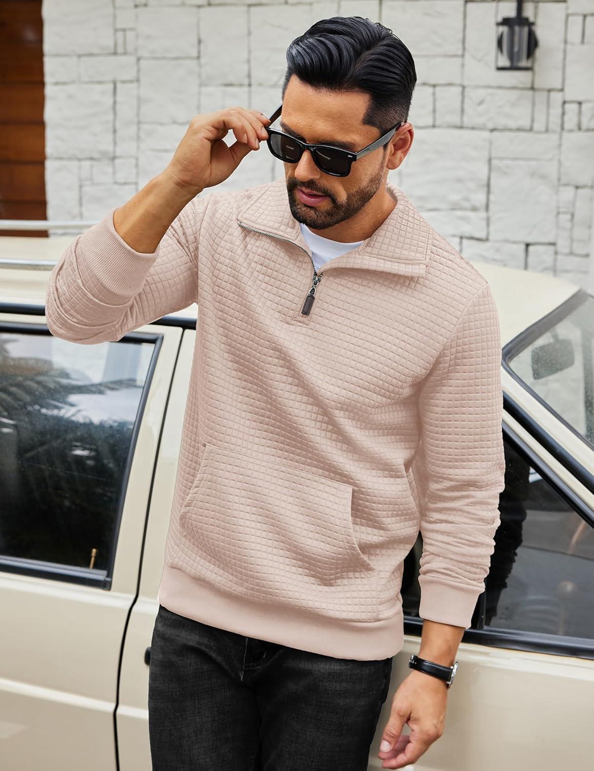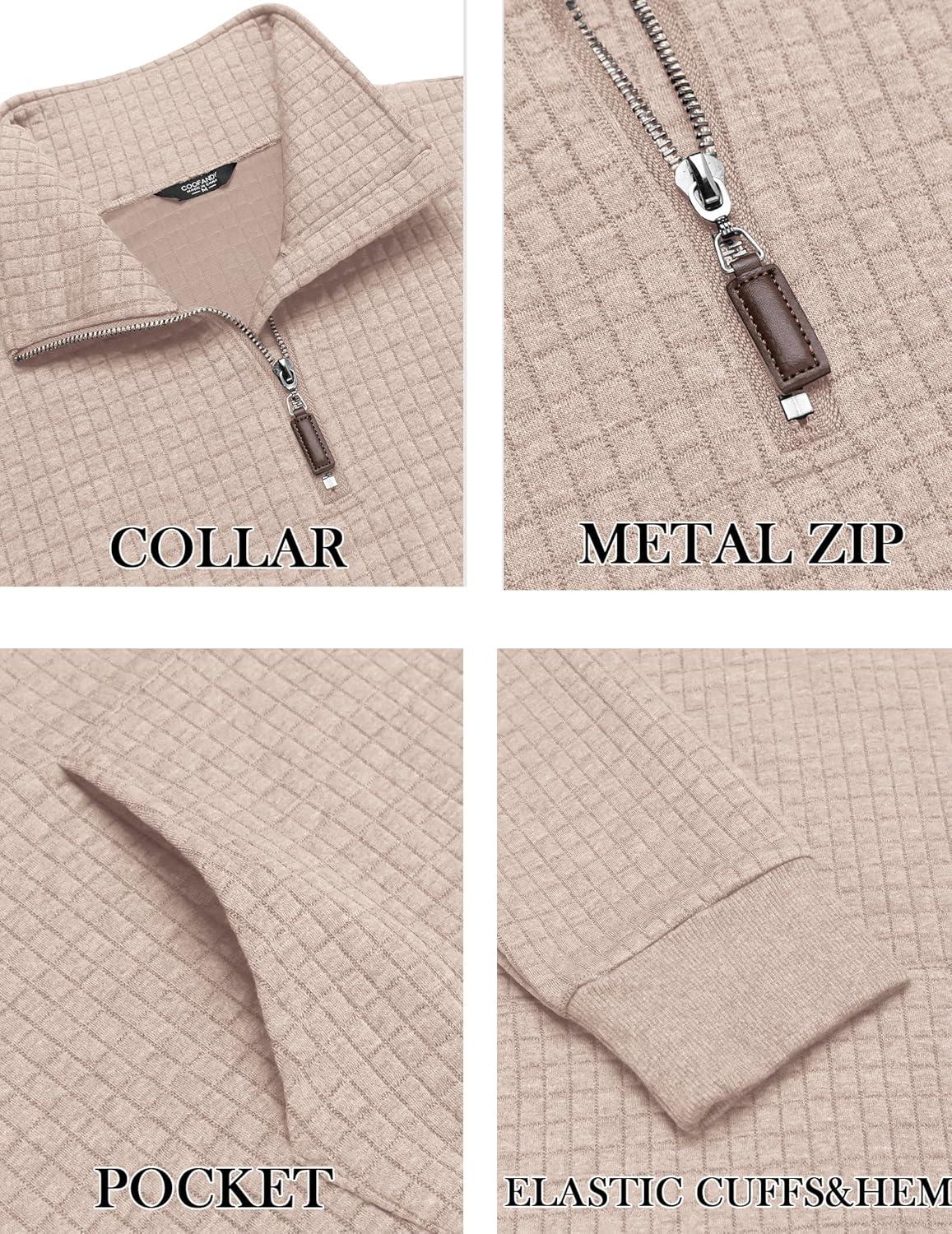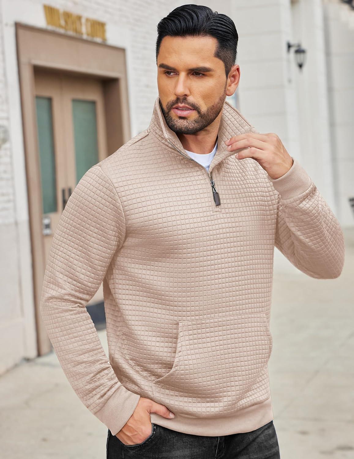 COOFANDY Mens Quarter Zip Sweatshirt Long Sleeve Casual Waffle Pullover Hoodies with Pocket(Light Khaki)