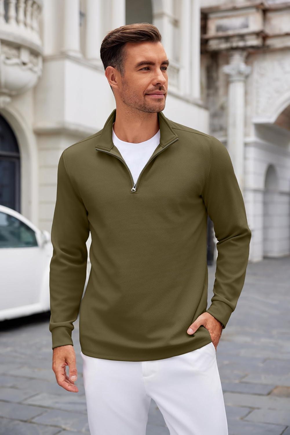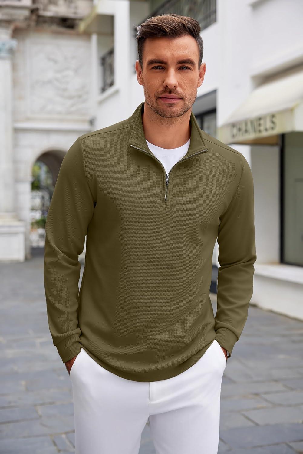 COOFANDY Men’s Quarter Zip Up Pullover Lightweight Mock Neck Sweatshirt Casual Long Sleeve Polo Shirt(Army Green)