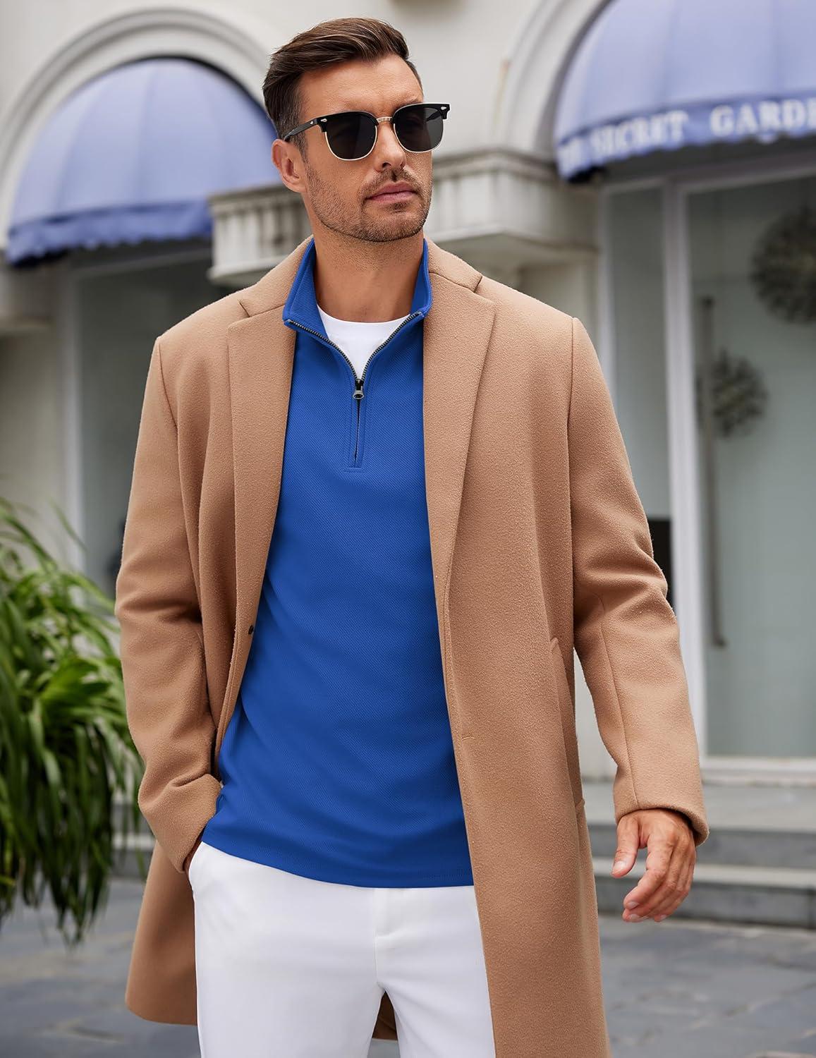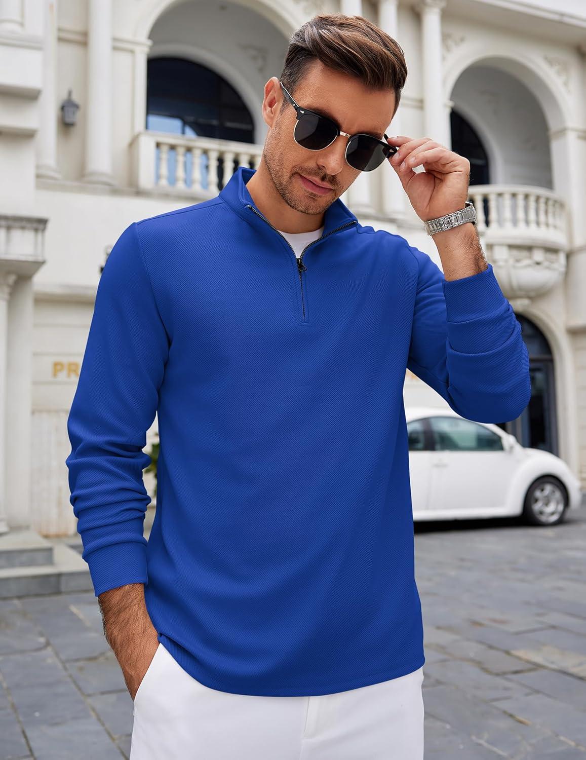 COOFANDY Men’s Quarter Zip Up Pullover Lightweight Mock Neck Sweatshirt Casual Long Sleeve Polo Shirt(Blue)
