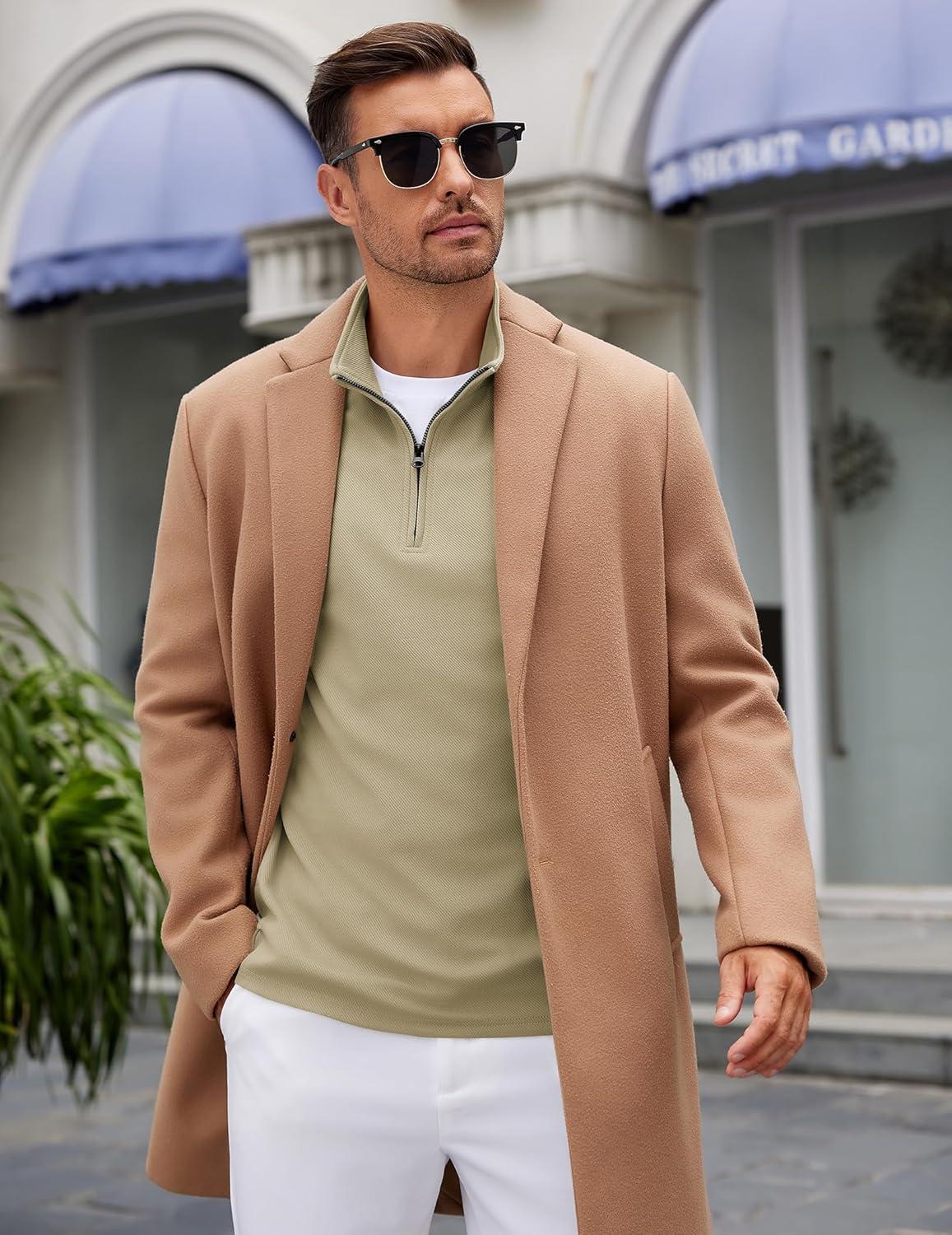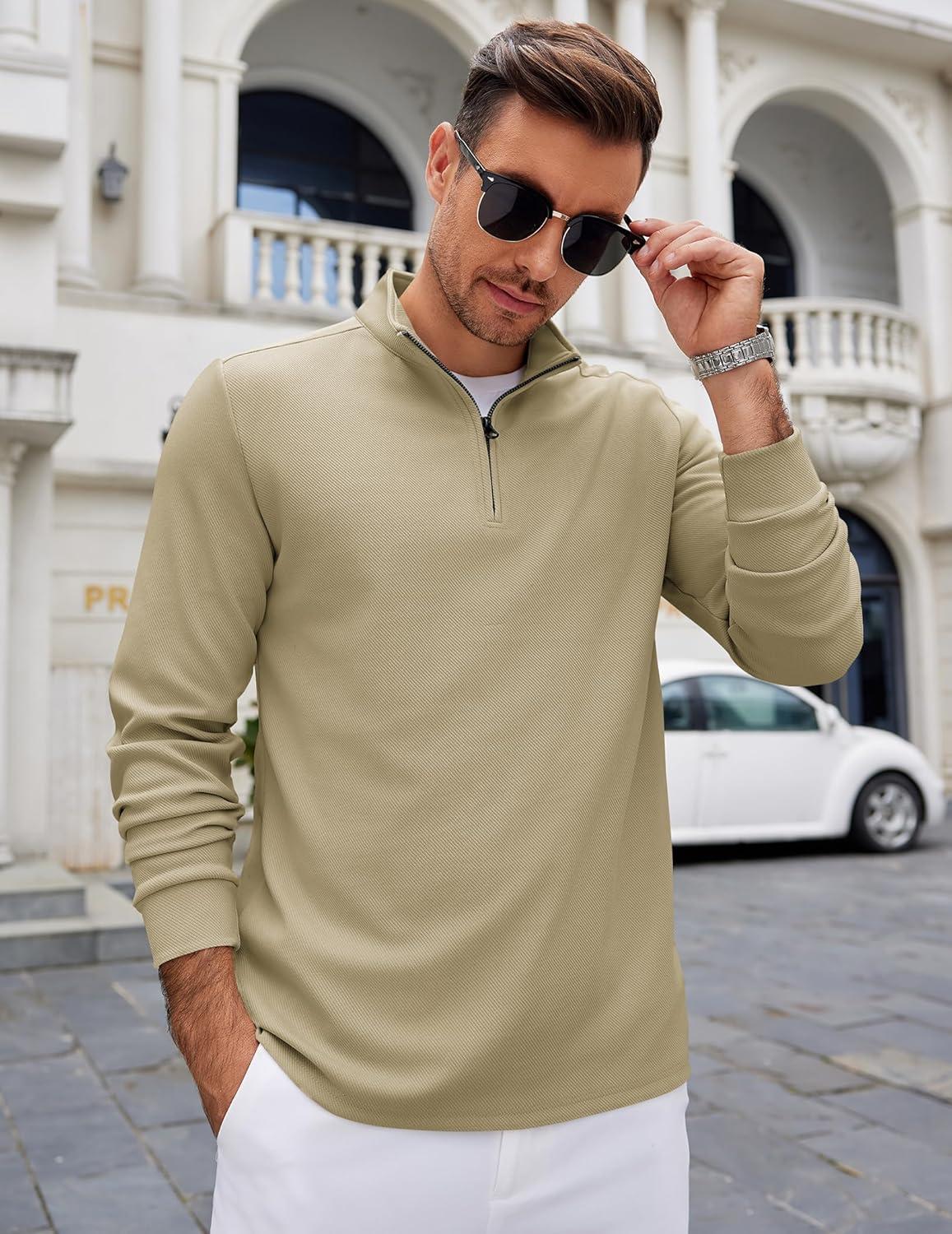 COOFANDY Men’s Quarter Zip Up Pullover Lightweight Mock Neck Sweatshirt Casual Long Sleeve Polo Shirt(Camel)