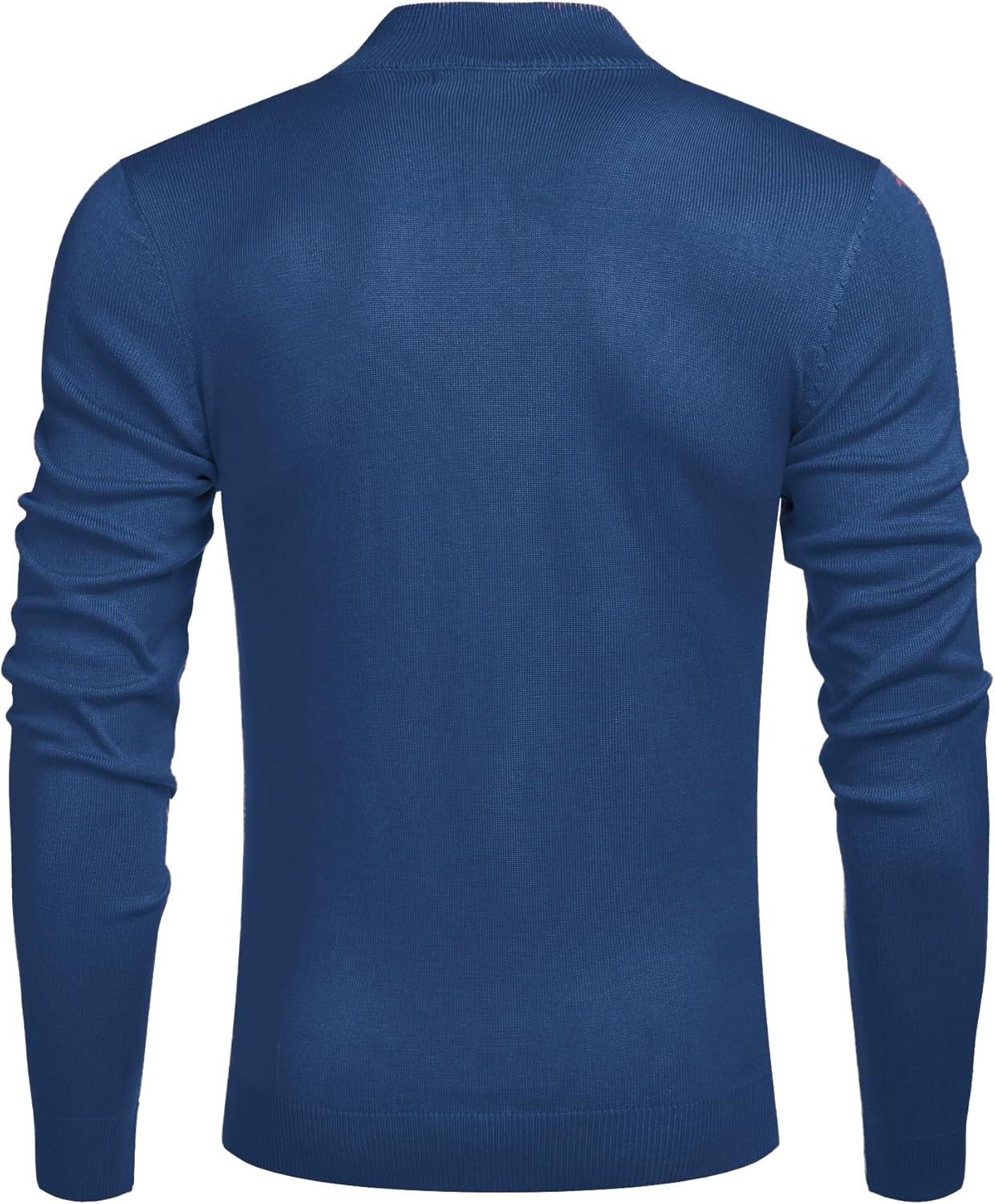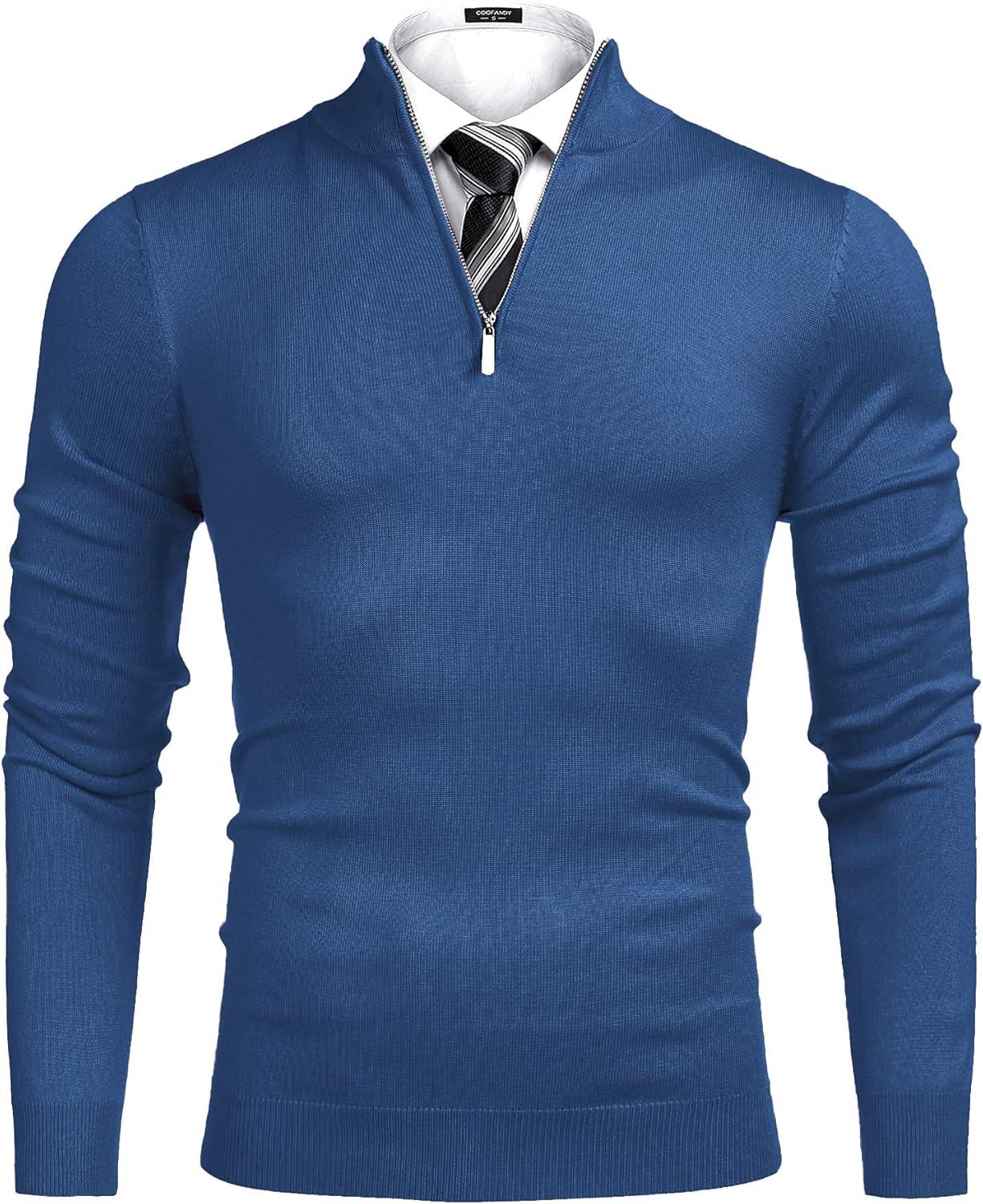 COOFANDY Men’s Quarter Zip Up Sweaters Slim Fit Lightweight Mock Neck Pullover Casual Polo Sweaters(A-dark Blue)