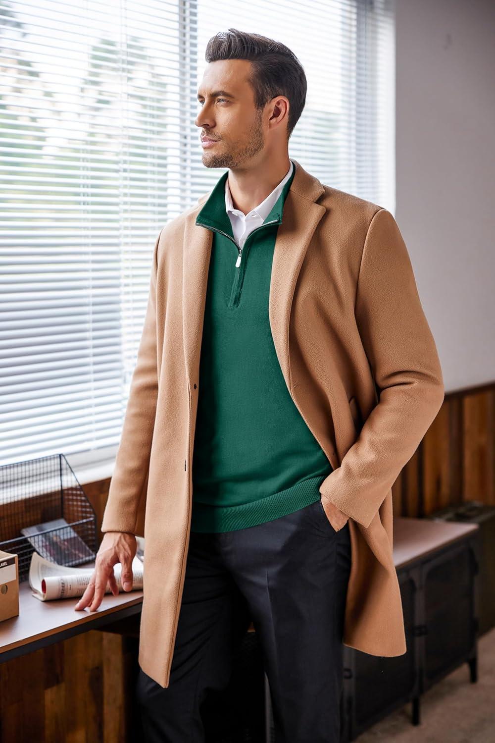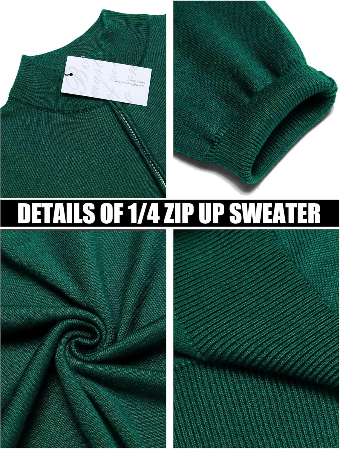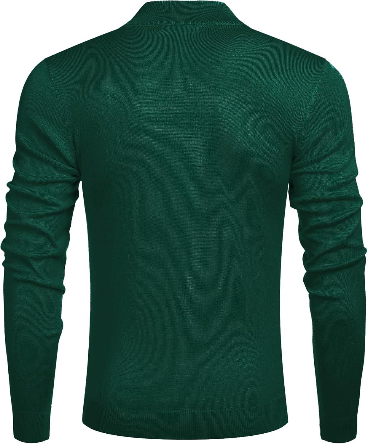COOFANDY Men’s Quarter Zip Up Sweaters Slim Fit Lightweight Mock Neck Pullover Casual Polo Sweaters(Dark Green)