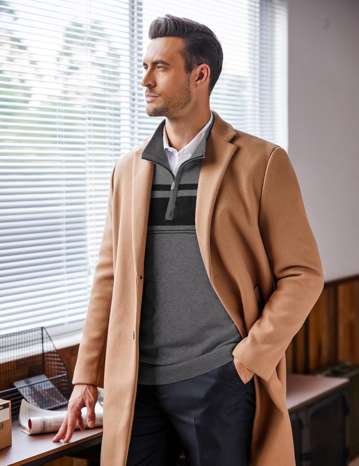COOFANDY Men’s Quarter Zip Up Sweaters Slim Fit Lightweight Mock Neck Pullover Casual Polo Sweaters(Dark Heather Grey & Black Stripe)