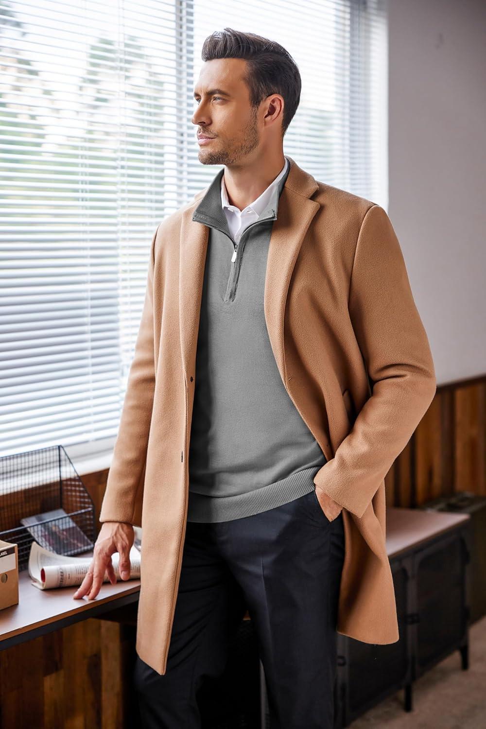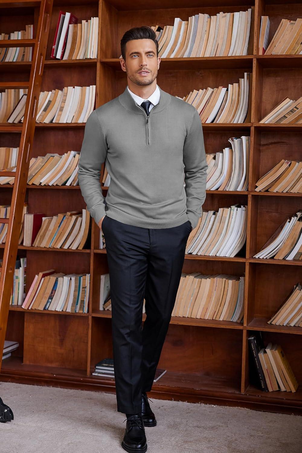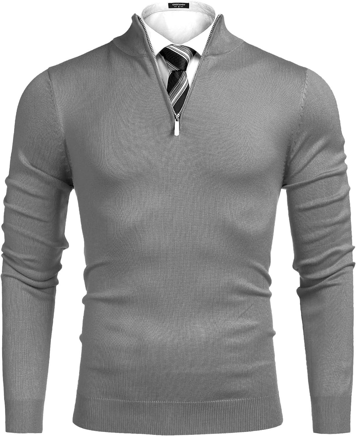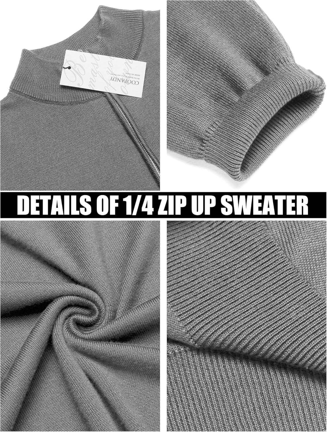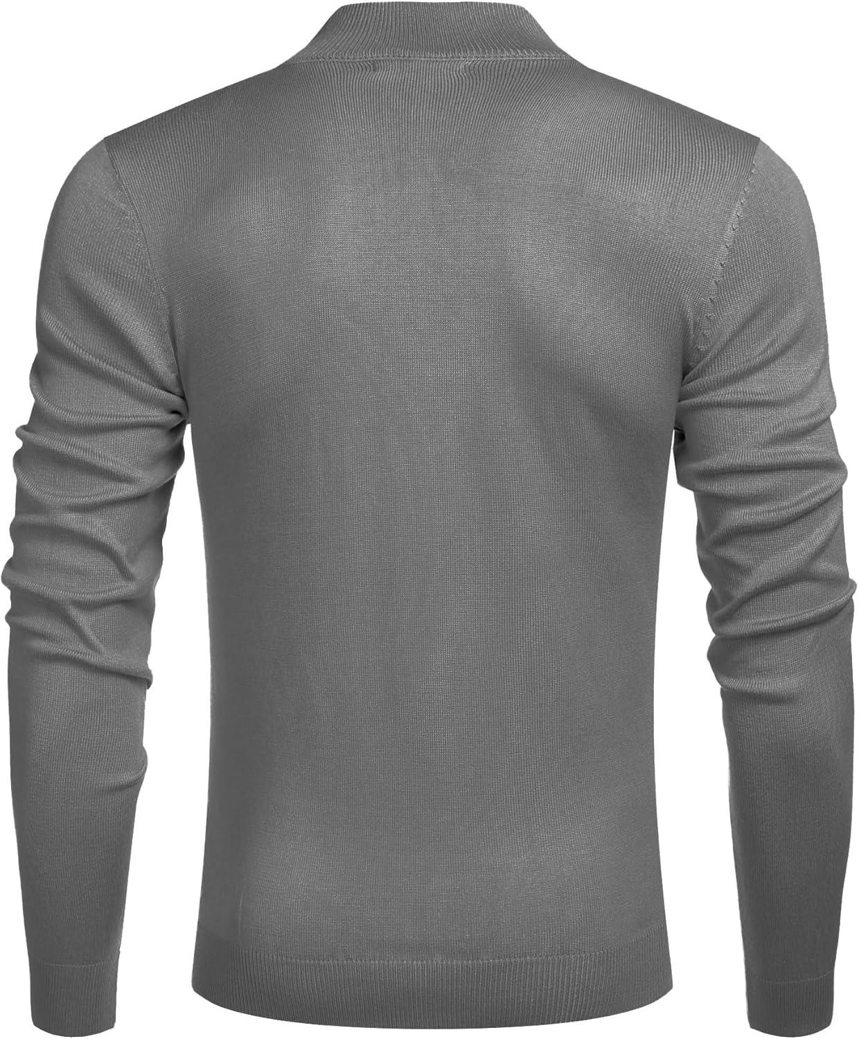 COOFANDY Men’s Quarter Zip Up Sweaters Slim Fit Lightweight Mock Neck Pullover Casual Polo Sweaters(Grey)