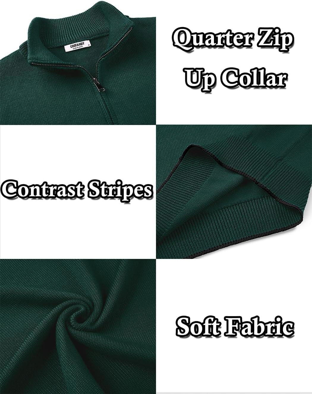 COOFANDY Men’s Quarter Zip Up Sweaters Slim Fit Lightweight Mock Neck Pullover Casual Polo Sweaters(Lake Green)