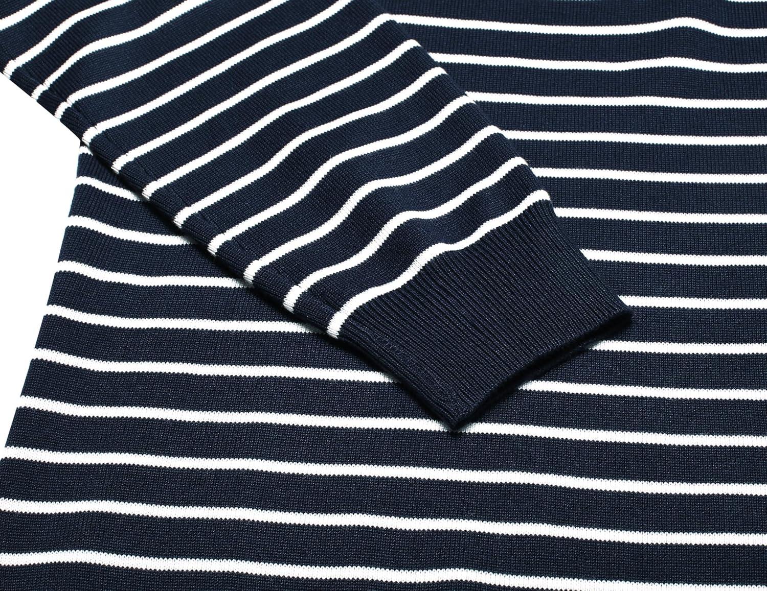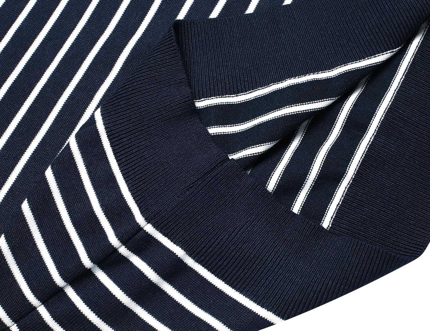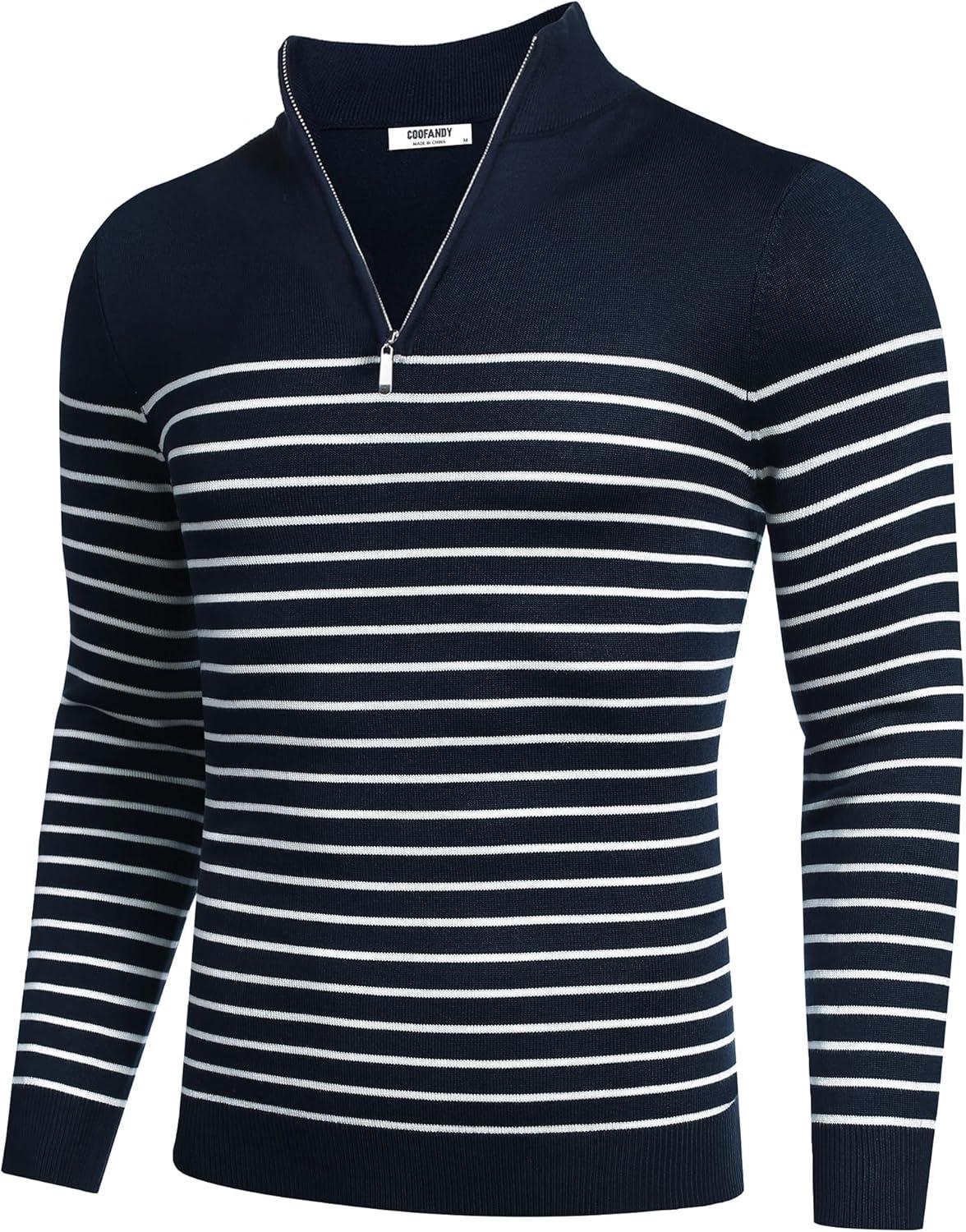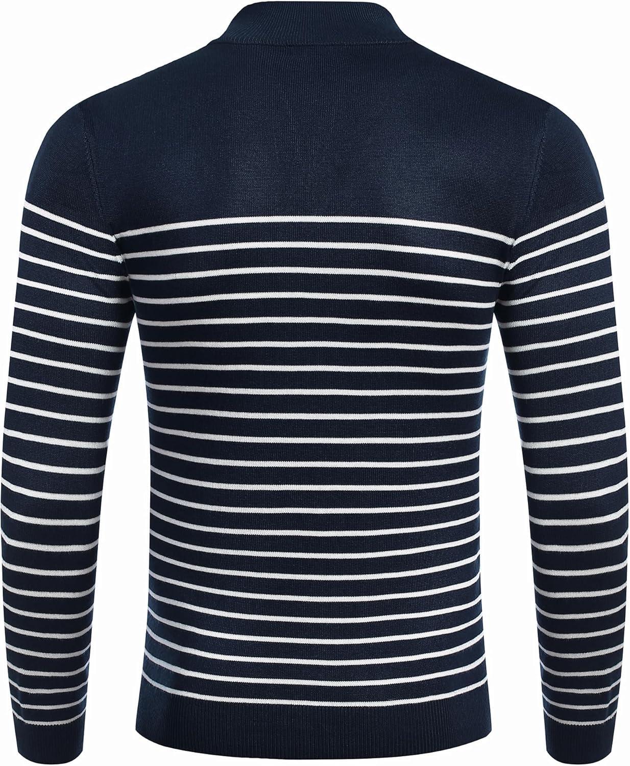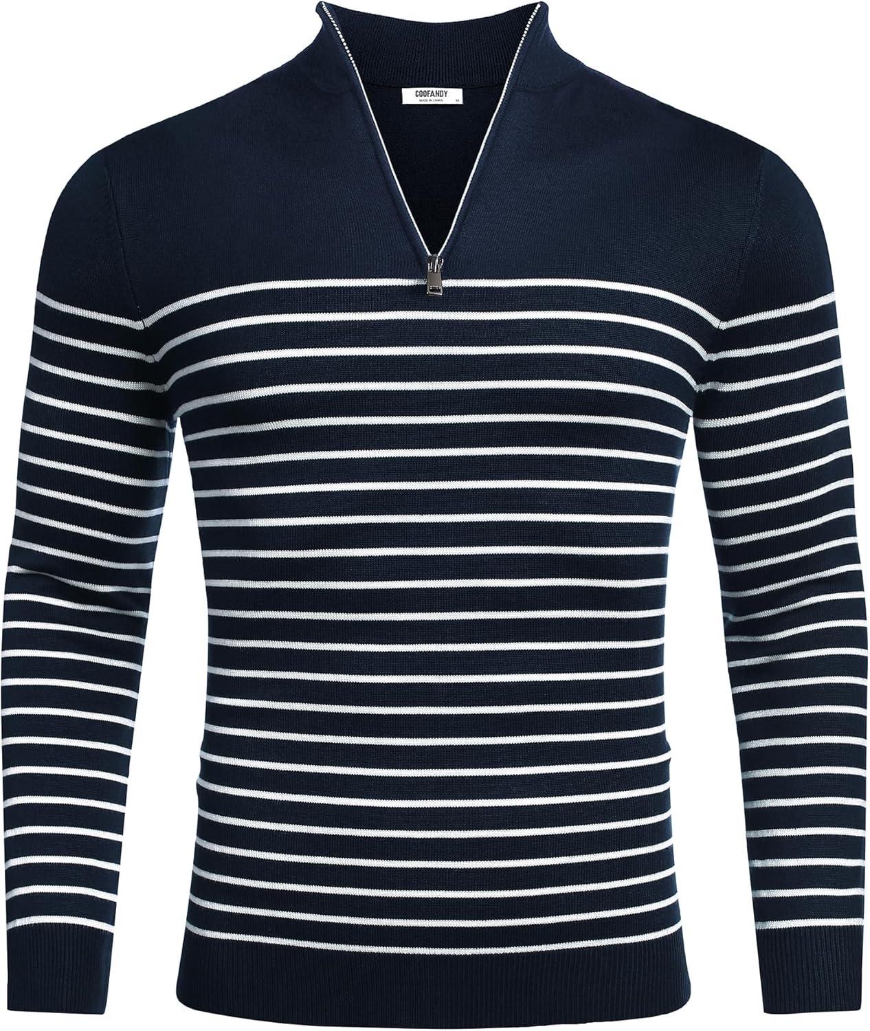 COOFANDY Men’s Quarter Zip Up Sweaters Slim Fit Lightweight Mock Neck Pullover Casual Polo Sweaters(Stripe-white Navy)