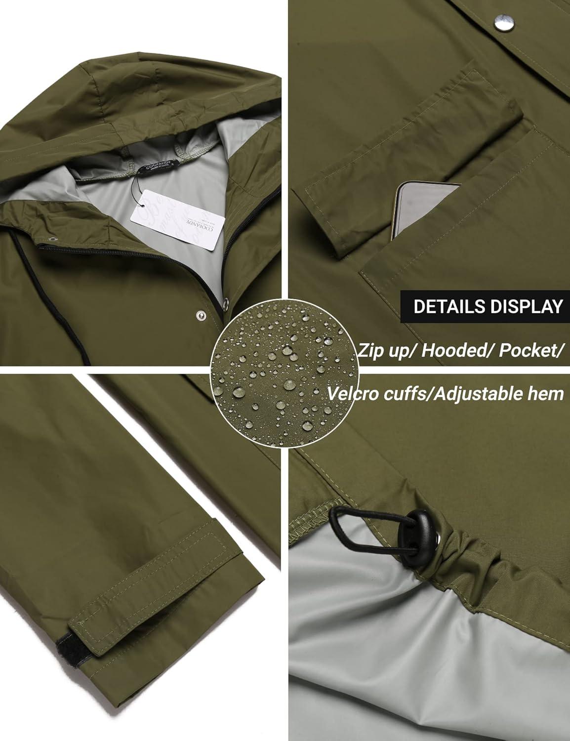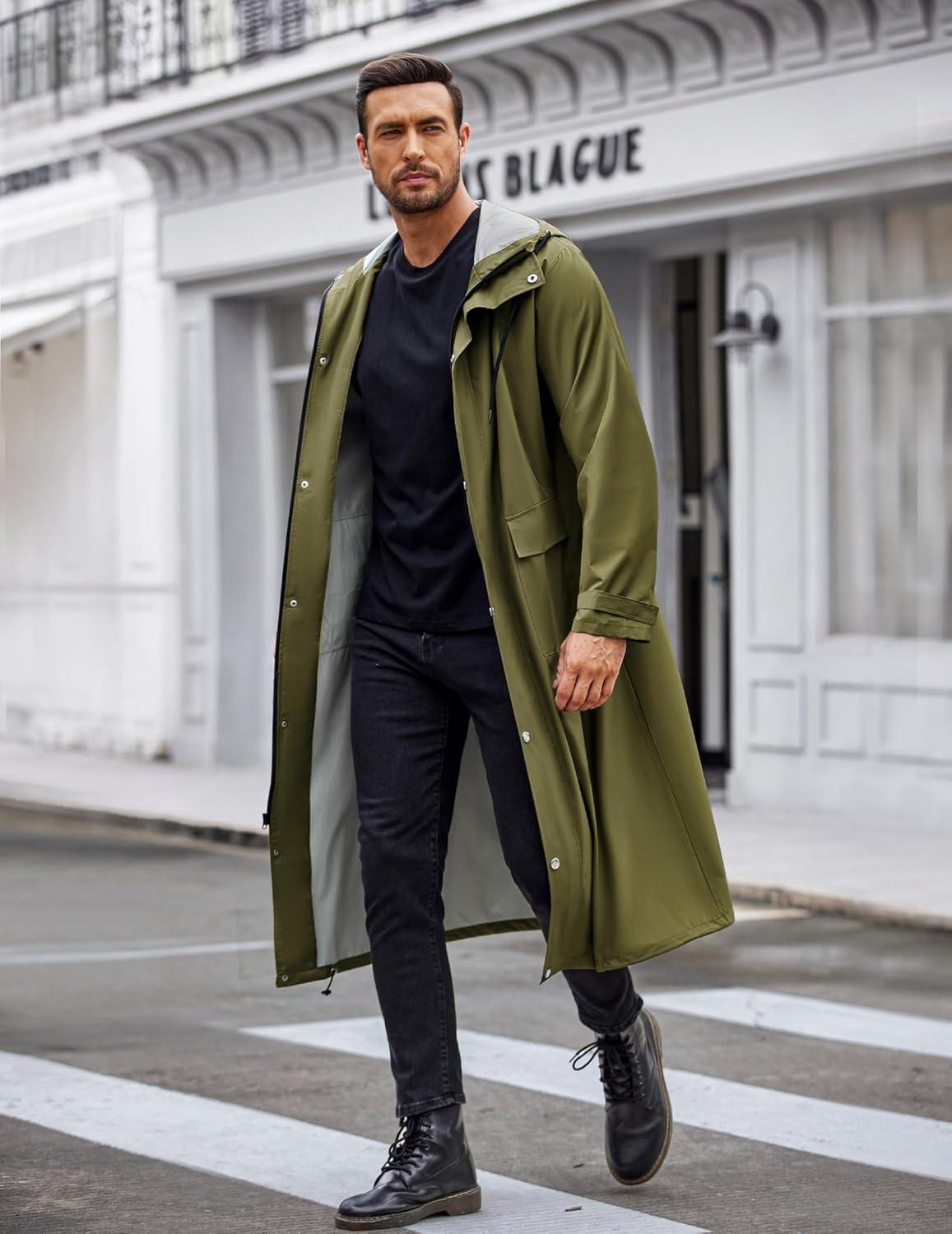 COOFANDY Men’s Rain Jacket with Hood Waterproof Lightweight Active Long Raincoat(Army Green)