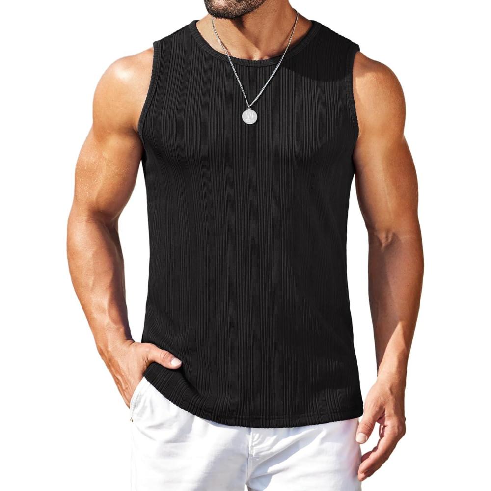 COOFANDY Mens Ribbed Knit Tank Tops Casual Sleeveless Muscle Shirts Basic Undershirts Tank(Black)
