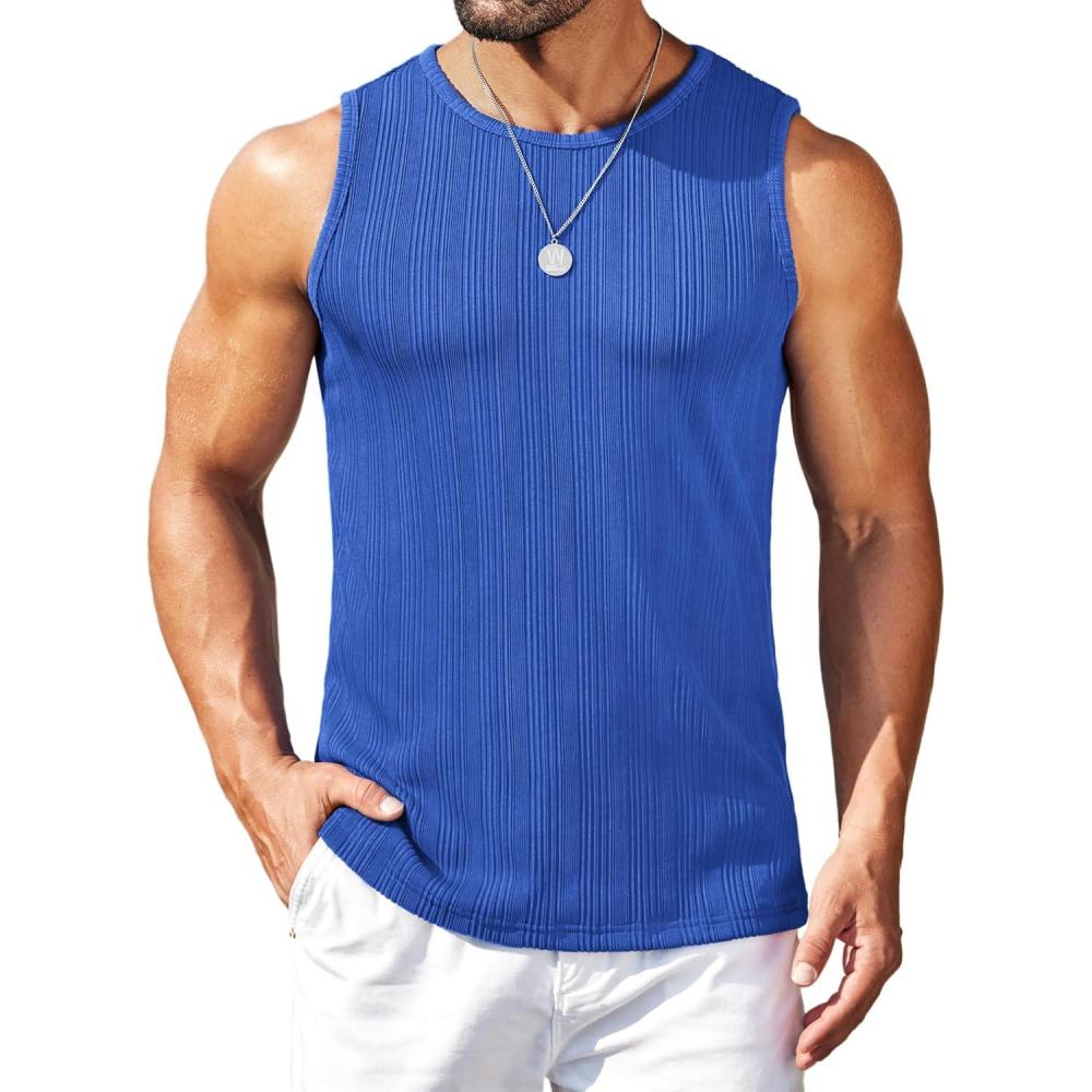 COOFANDY Mens Ribbed Knit Tank Tops Casual Sleeveless Muscle Shirts Basic Undershirts Tank(Royal Blue)