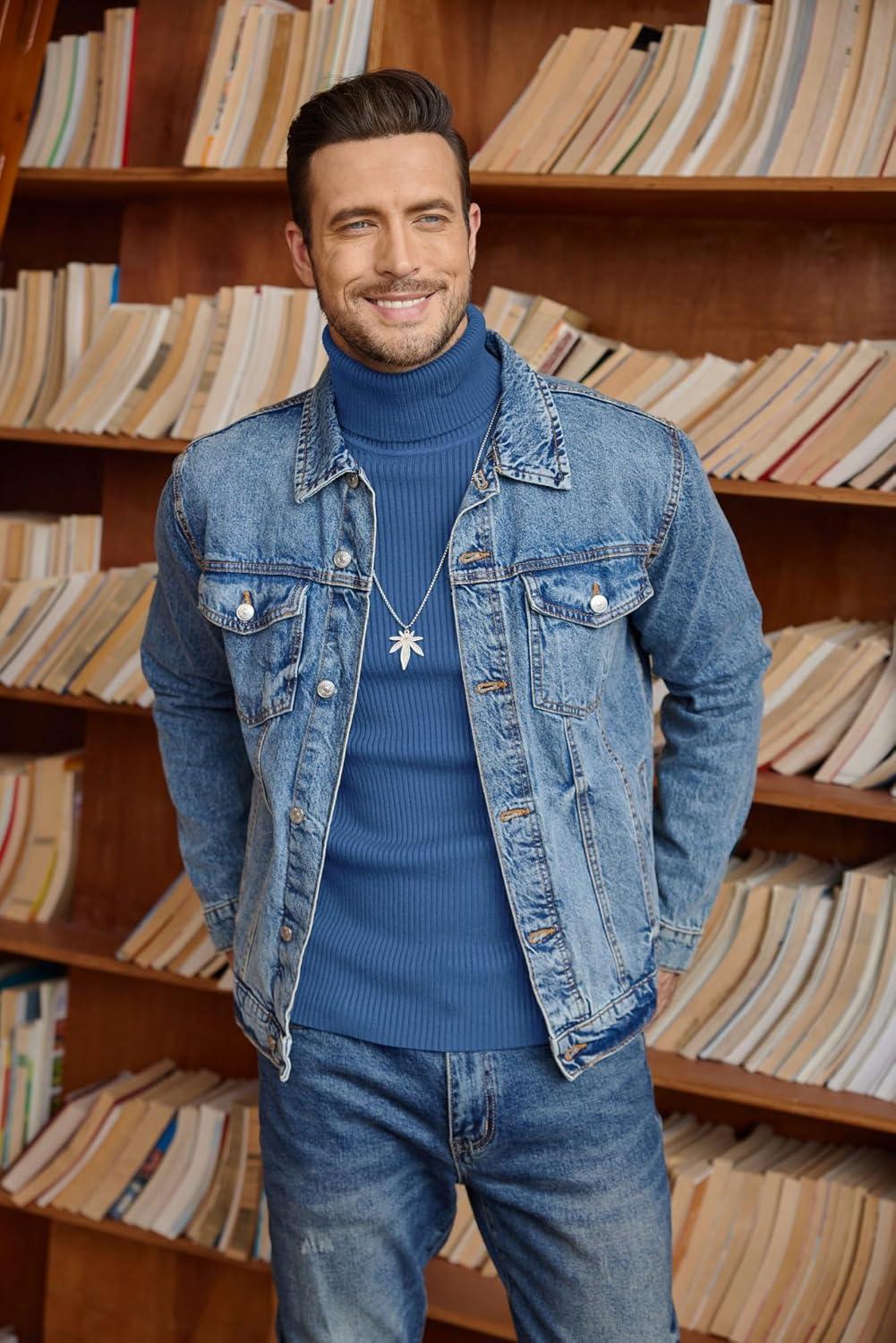 COOFANDY Mens Ribbed Slim Fit Knitted Pullover Casual Turtleneck Sweater(Cornflower Blue)