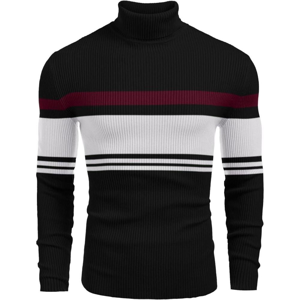 Be the first to review “COOFANDY Mens Ribbed Slim Fit Knitted Pullover Casual Turtleneck Sweater(Striped-light Grey & Red)”