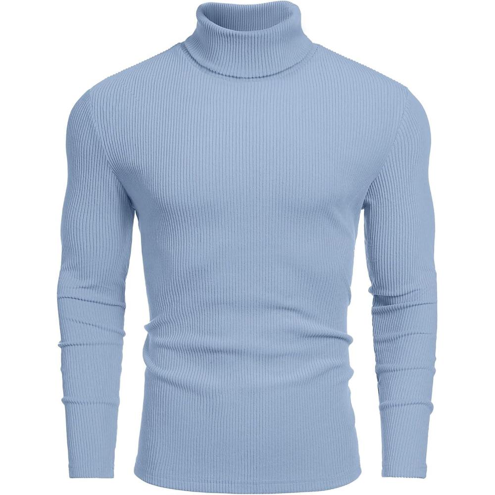 COOFANDY Men’s Ribbed Turtleneck Sweater Casual Basic Long Sleeve Knitted Pullover Sweater(Light Blue)