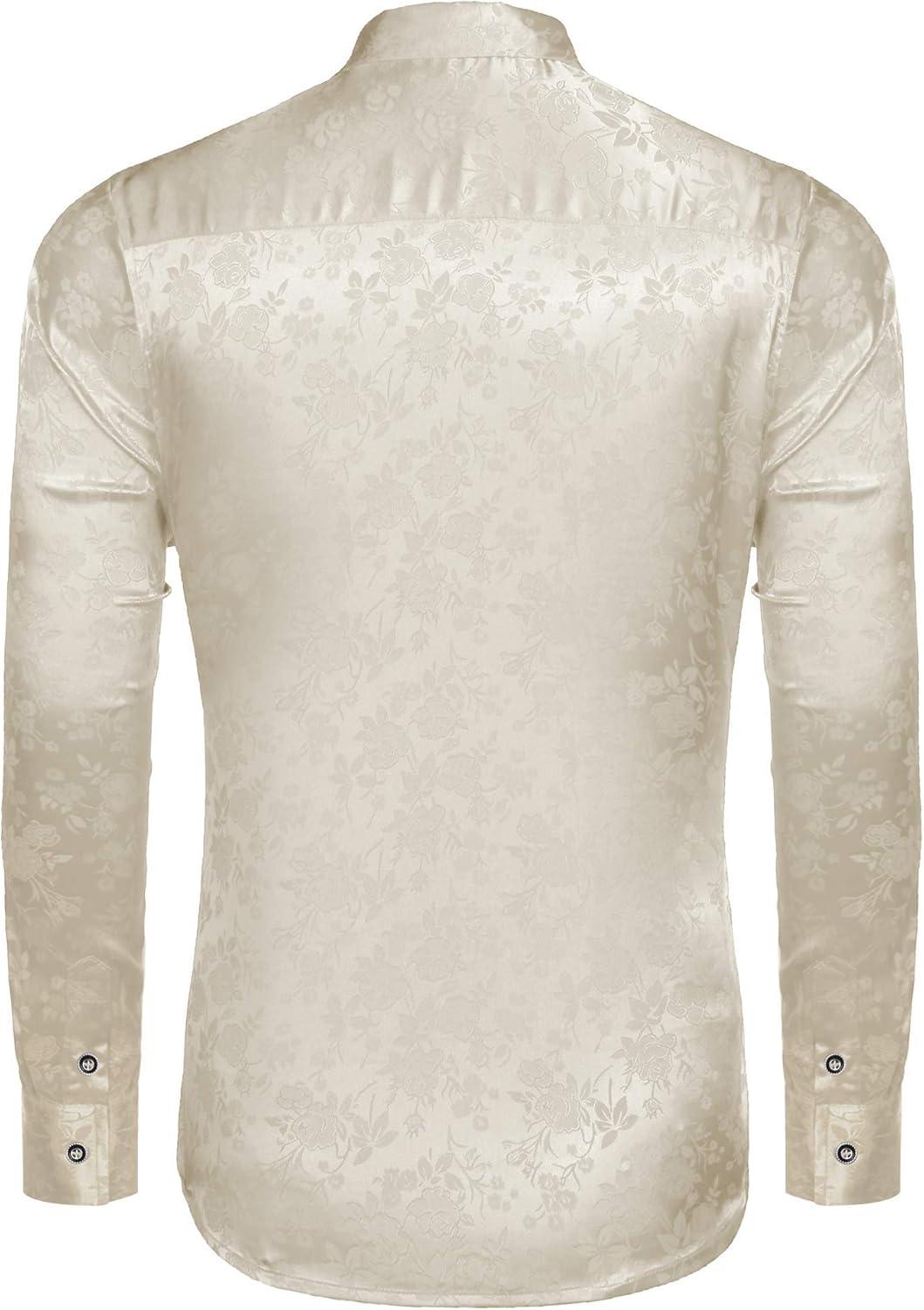 COOFANDY Men’s Rose Shiny Shirt Luxury Flowered Printed Button Down Shirt(Beige)