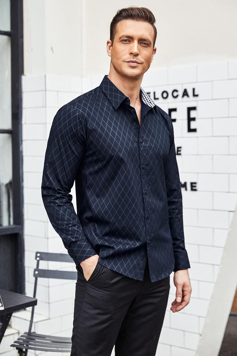COOFDANDY men's shiny stylish shirt combines with the full rose pattern to create different vintage elegance, luxury floral print, slim fit button closure, turndown collar, the special printed design show your distinctive taste and fashion feel.