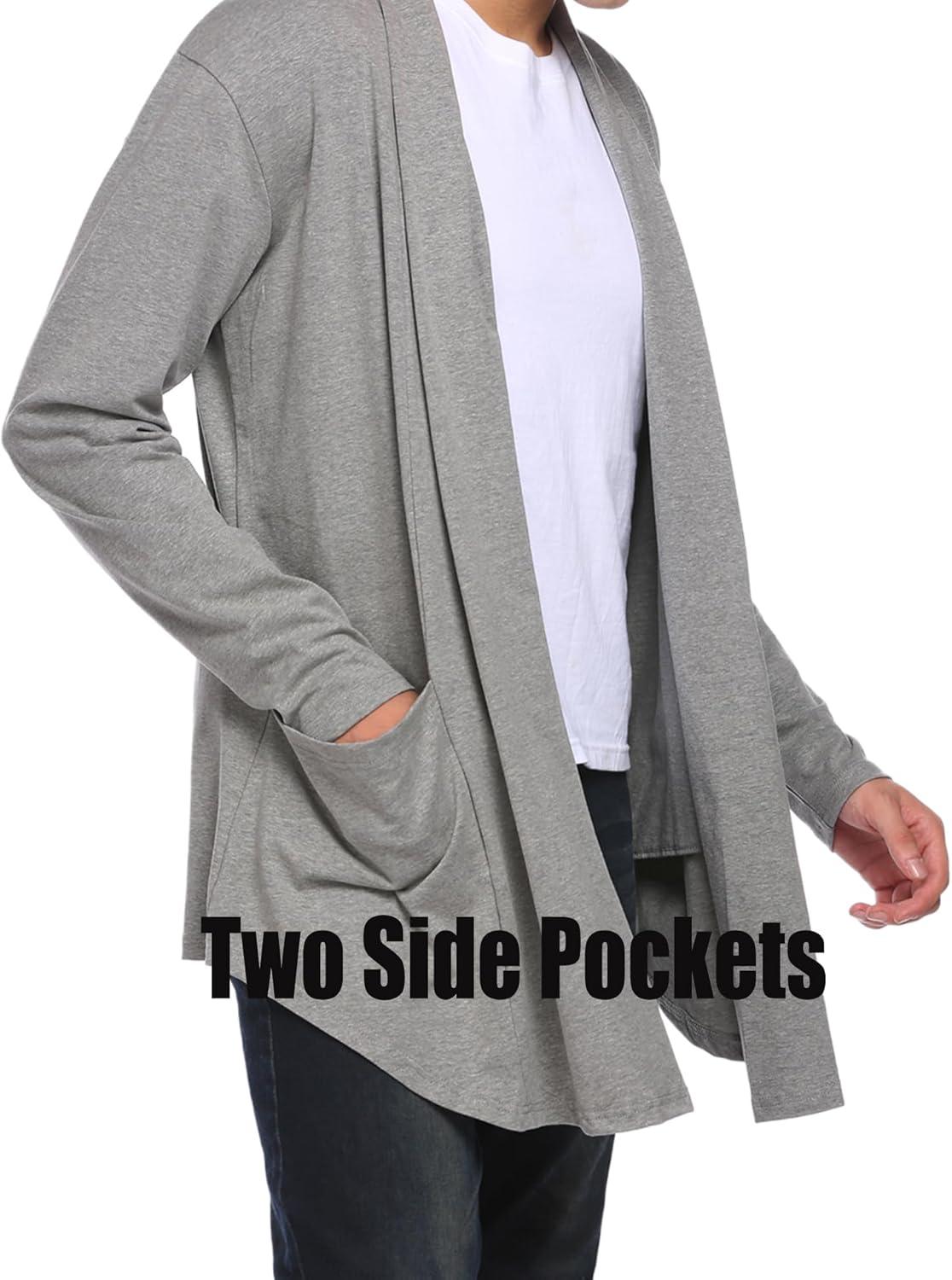 COOFANDY Men’s Ruffle Shawl Collar Cardigan Open Front Lightweight Long Length Drape Cape Overcoat with Pockets(Gray)