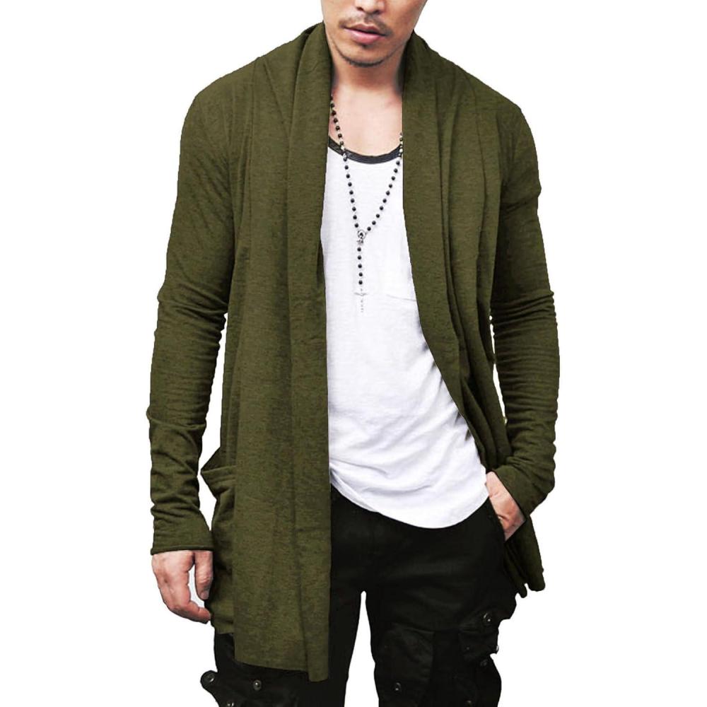 COOFANDY Men’s Ruffle Shawl Collar Cardigan Open Front Lightweight Long Length Drape Cape Overcoat with Pockets(Olive Green)